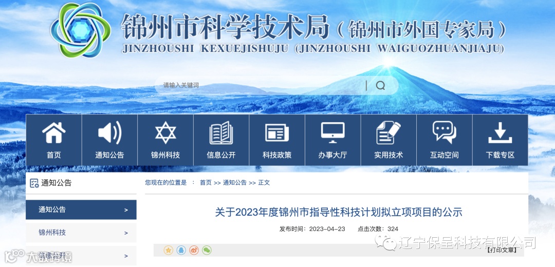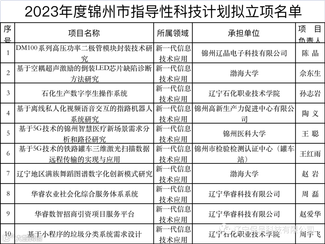 辽宁保呈科技有限公司本期保呈-快讯内容:关于《关于2023年度锦州市指导性科技计划拟立项项目的公示》-内容分享