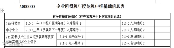 特别提醒:纳税人在高新技术企业认定有效期内,无论是否享受企业所得税优惠政策,均应在A000000填报此项。