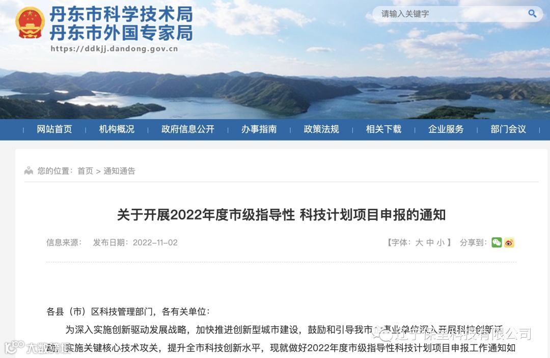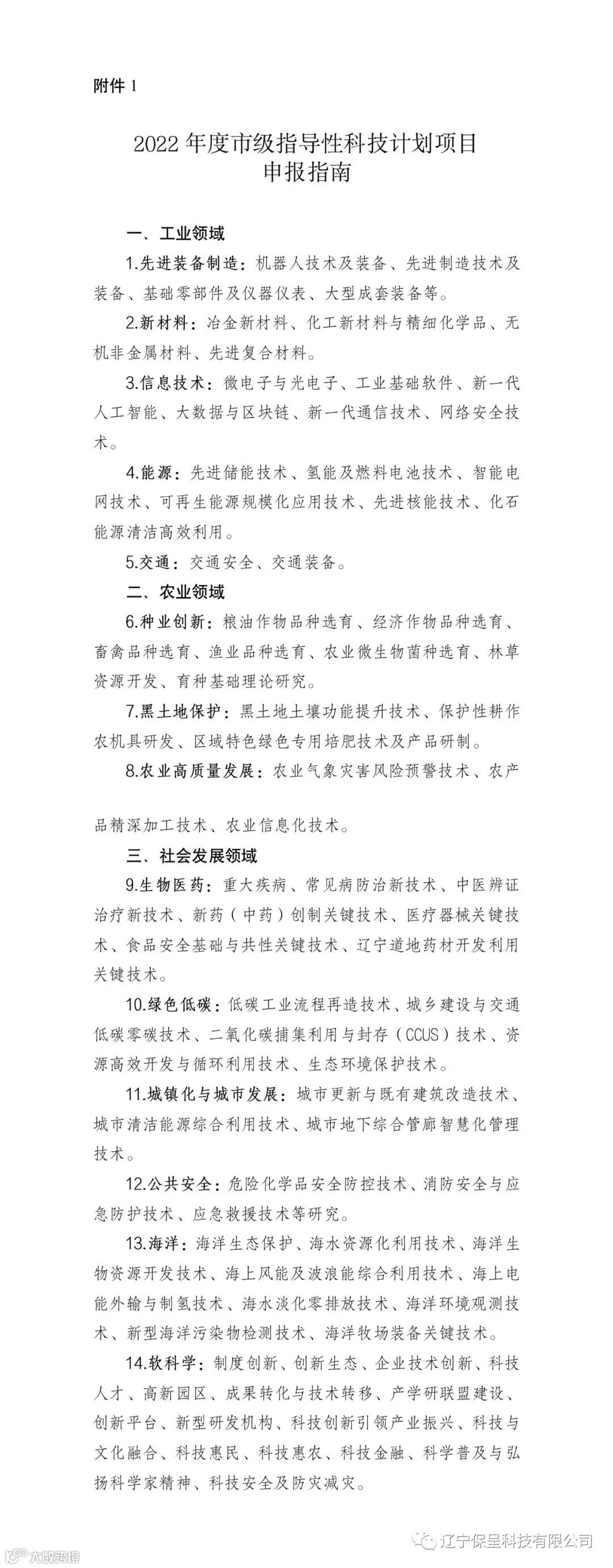 辽宁保呈科技有限公司本期保呈快讯内容:关于《丹东市关于开展2022年度市级指导性 科技计划项目申报的通知》-内容分享
