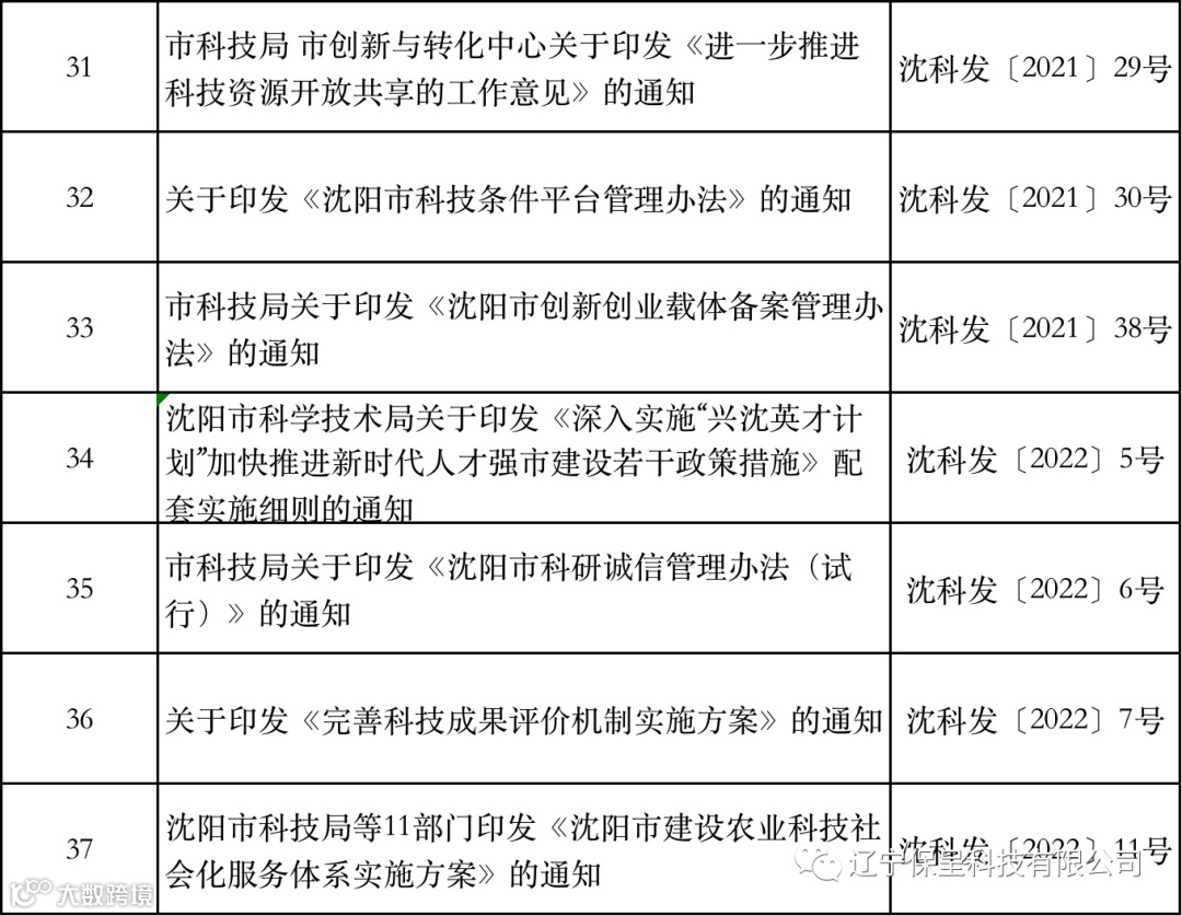 本期保呈快讯内容:关于《沈阳市科技局现行有效政策性和规范性文件目录公示》-内容分享