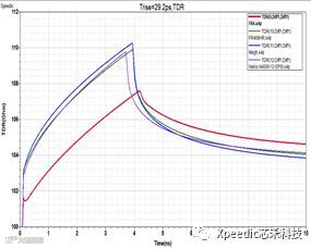 通道的阻抗不连续主要来自封装到板子或者链接器到板子间传输的过孔,因此需要优化过孔使其满足目标阻抗100ohm的要求。为了使阻抗在其范围,常使用背钻技术,如图4所示。表3列出了不同背钻深度的最小阻抗,我们可以清楚的看到其结果TDR阻抗变化。