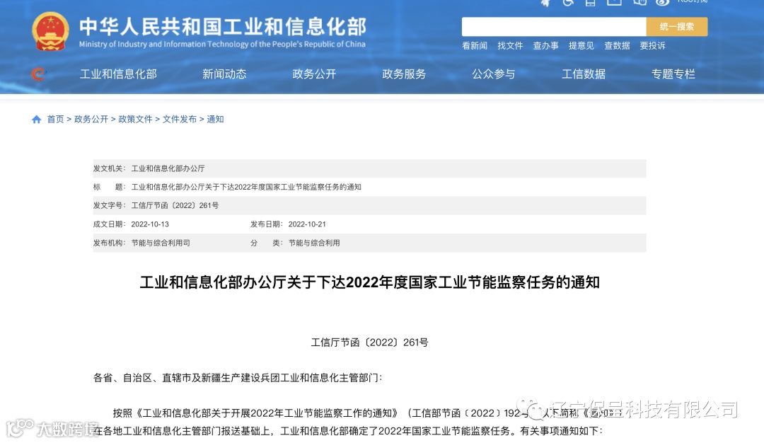 辽宁保呈科技有限公司本期保呈快讯内容:关于《工业和信息化部办公厅关于下达2022年度国家工业节能监察任务的通知》-内容分享