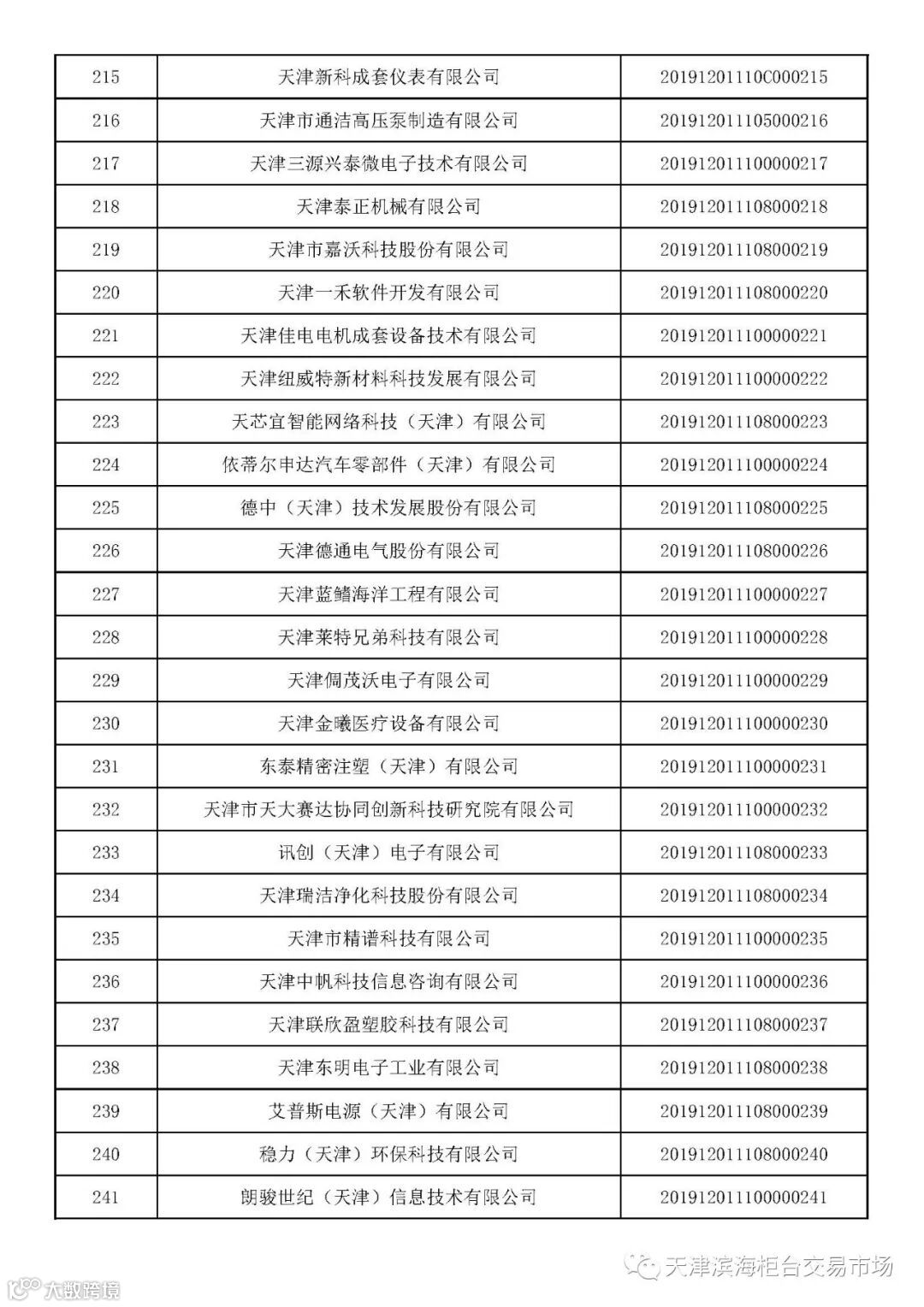 天津市2019年第一批入库国家科技型中小企业名单公告