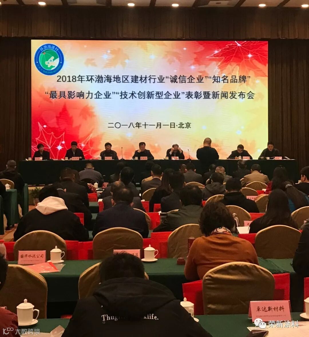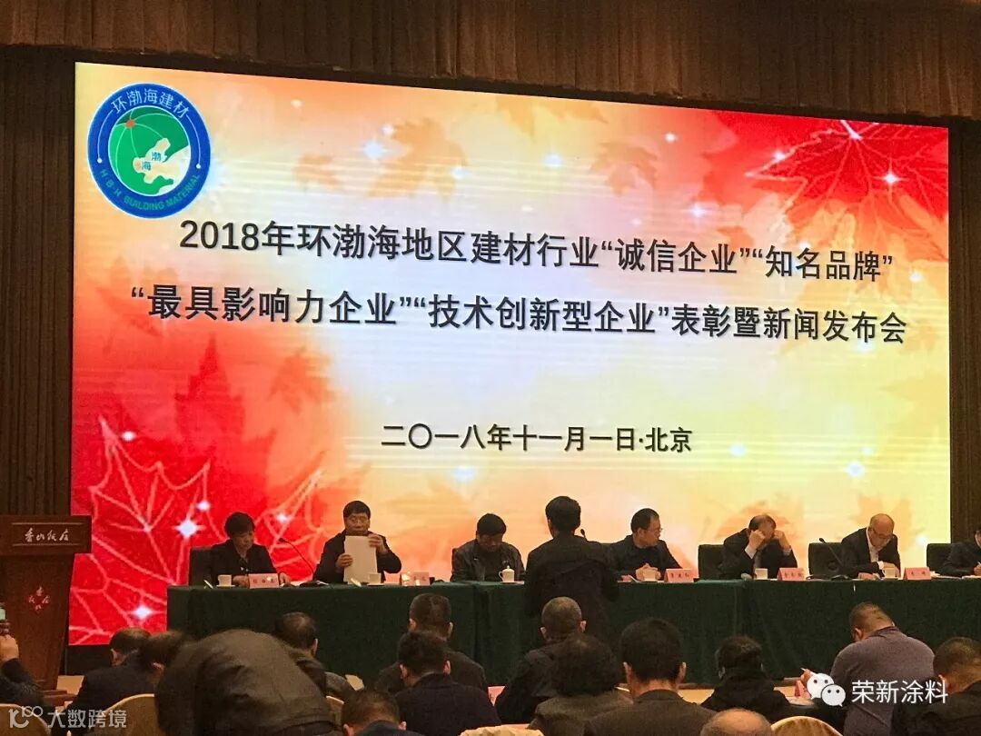 2018年11月1日,环渤海地区建材行业表彰大会暨新闻发布会于北京市香山饭店隆重召开。荣新涂料荣称“环渤海地区建材行业AAA级诚信企业”、“环渤海地区建材行业知名品牌”,并应邀出席了本次表彰大会。
