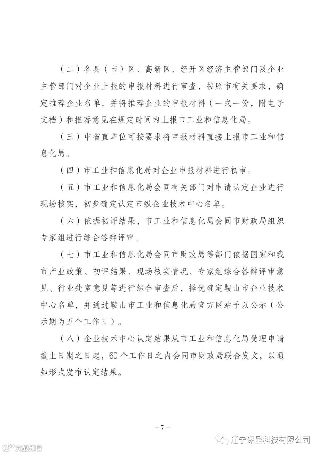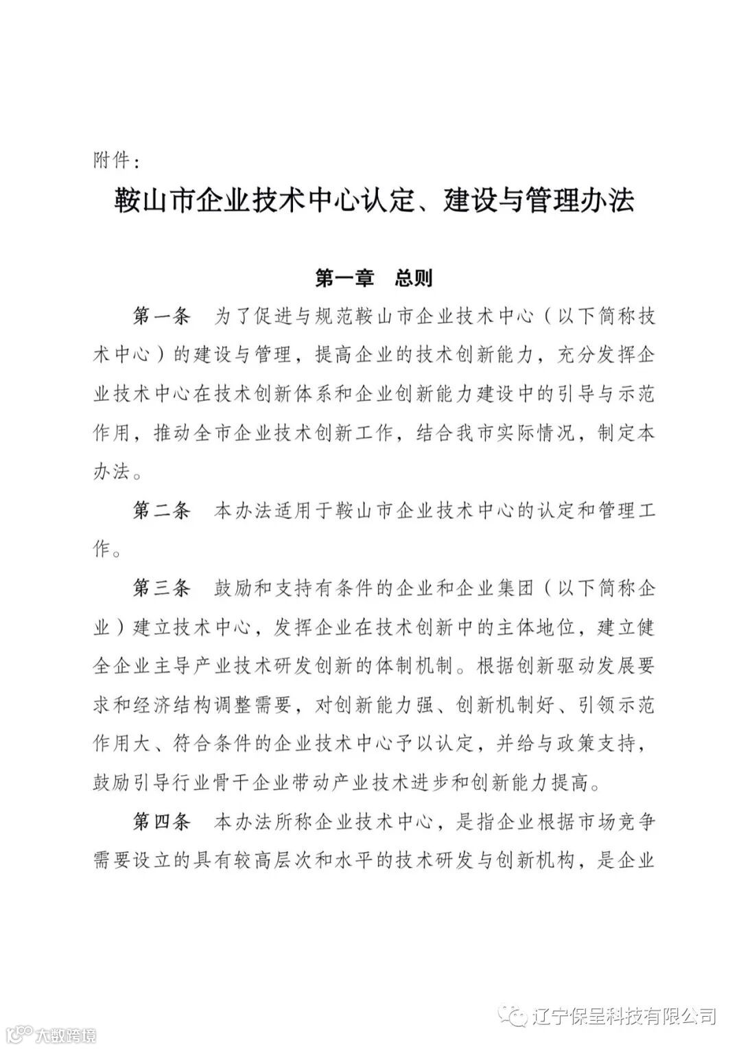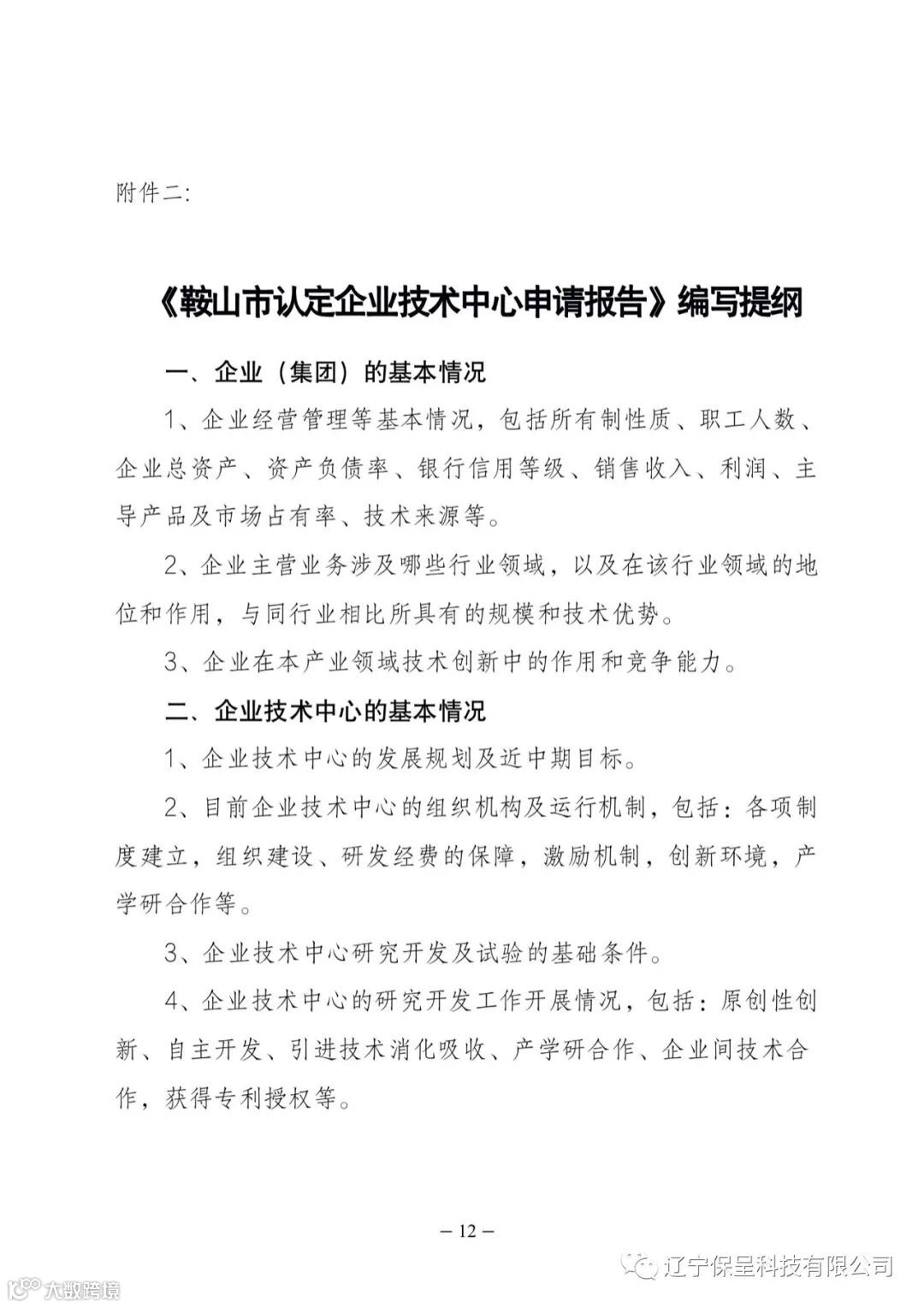 辽宁保呈科技有限公司本期保呈快讯内容:关于《鞍山市关于组织申报第十四批市级企业技术中心的通知》-内容分享