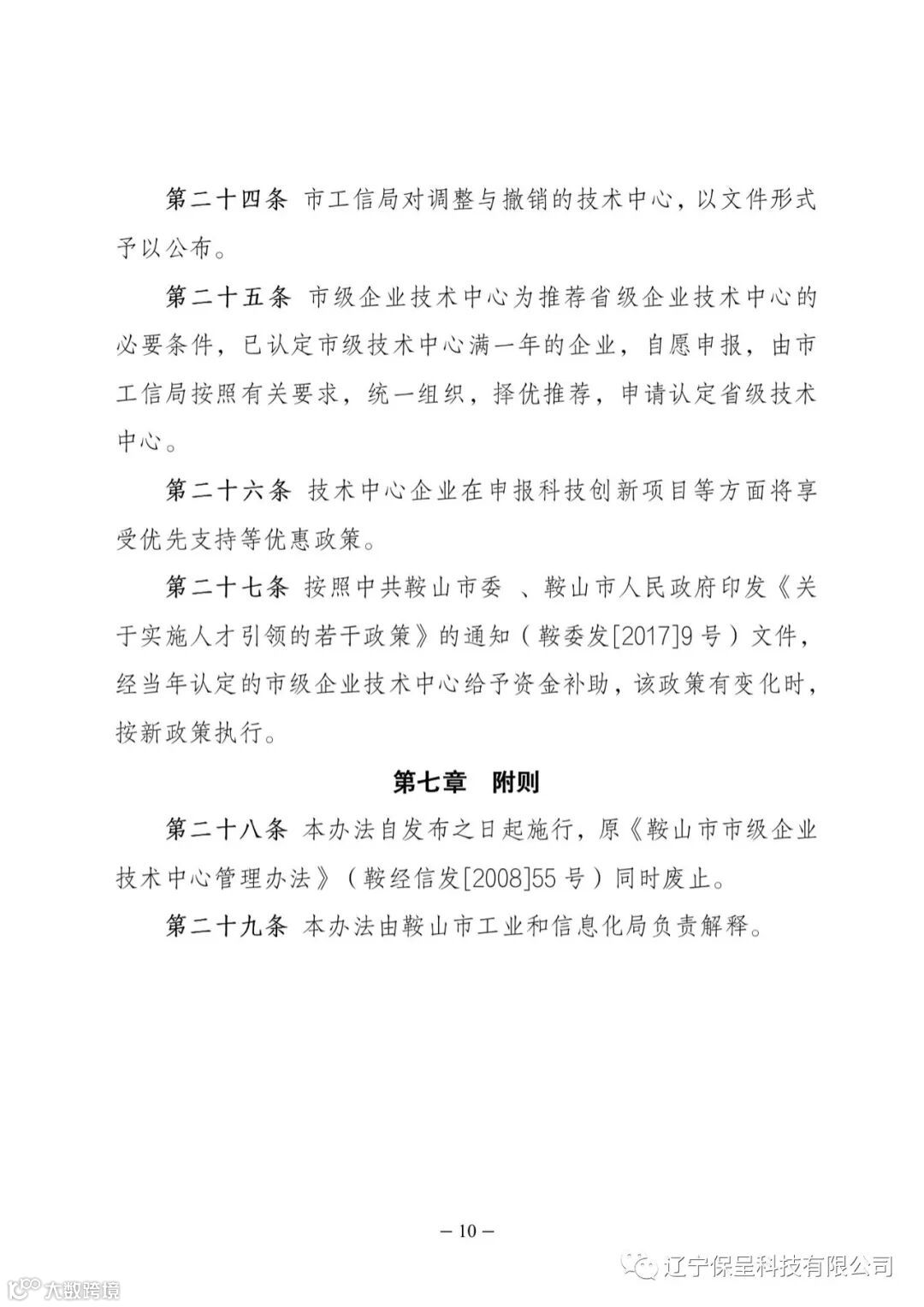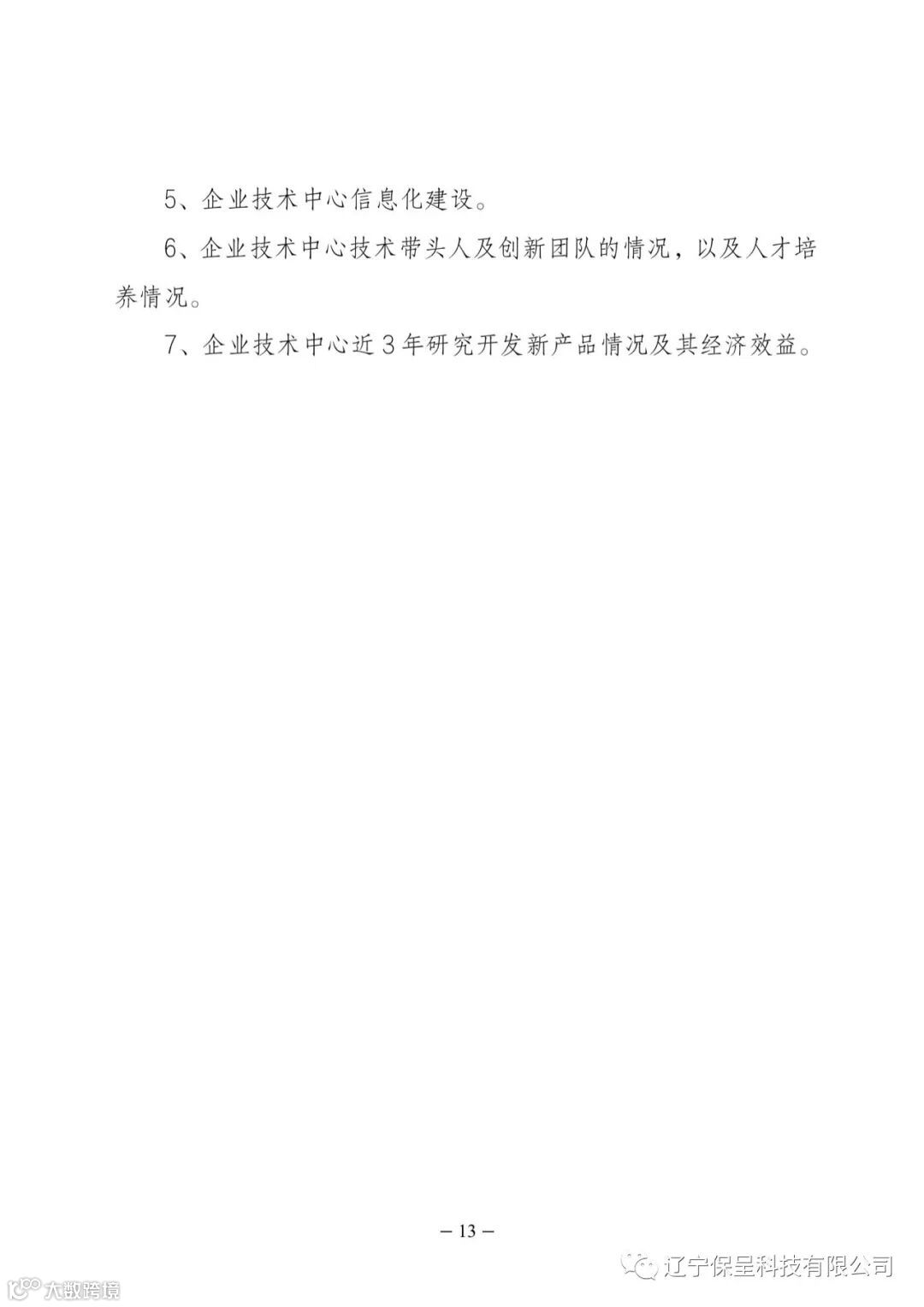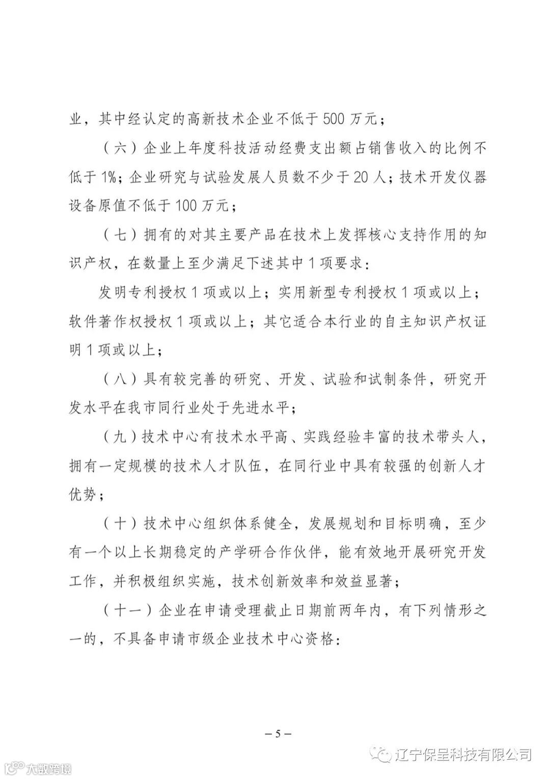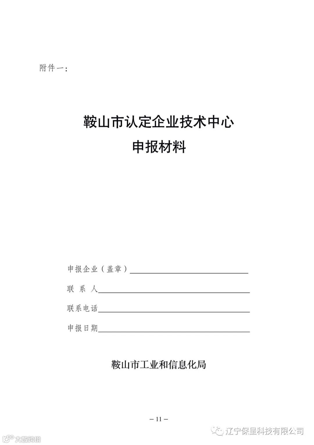 辽宁保呈科技有限公司本期保呈快讯内容:关于《鞍山市关于组织申报第十四批市级企业技术中心的通知》-内容分享