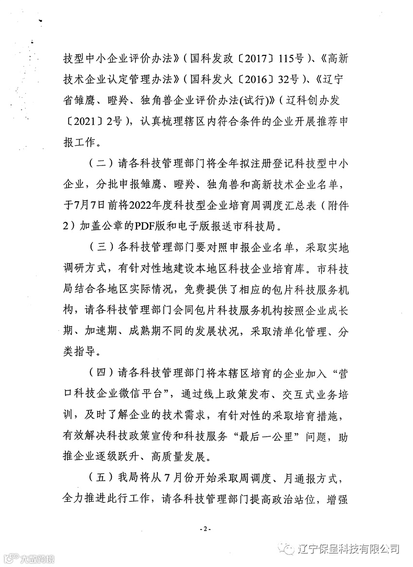 本期保呈-杨乔雯快讯内容:关于《推进营口市2022年度科技型企业梯度培育工作的通知》-内容分享