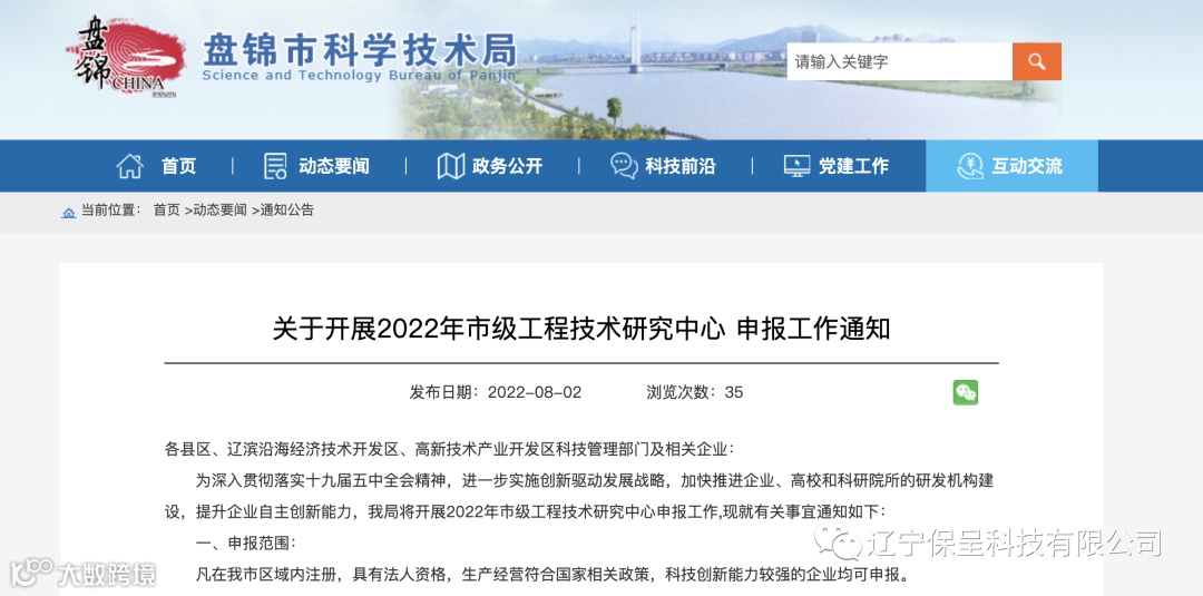 本期保呈快讯内容:盘锦市关于《开展2022年市级工程技术研究中心 申报工作通知》-内容分享