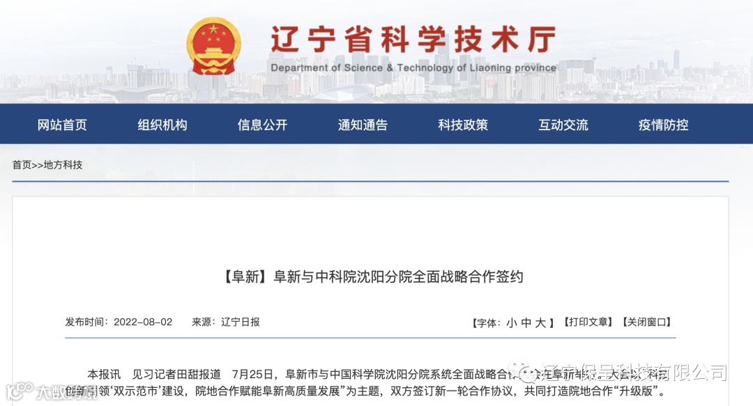 本期保呈快讯内容:关于《阜新市阜新与中科院沈阳分院全面战略合作签约》-内容分享