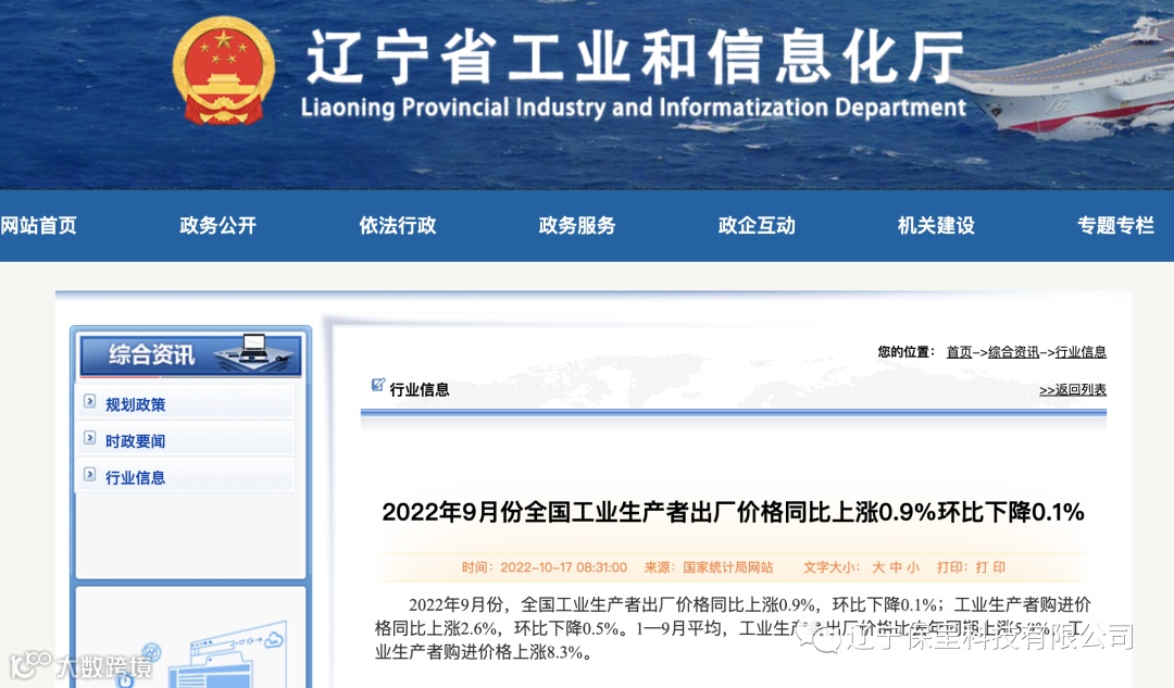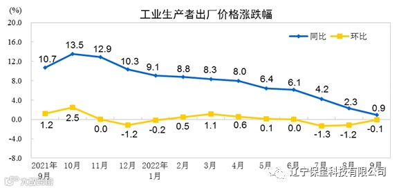 本期保呈快讯内容:关于《2022年9月份全国工业生产者出厂价格同比上涨0.9%环比下降0.1%》-内容分享