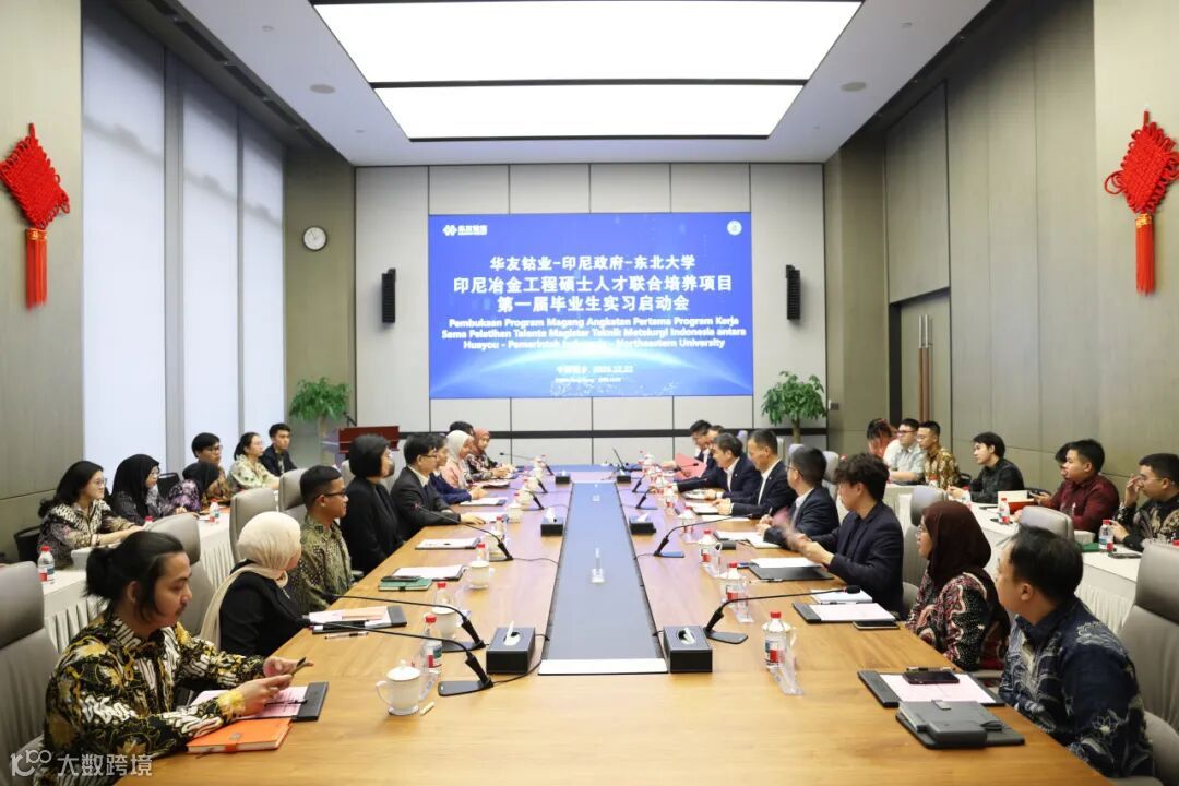 12月22日,“华友钴业-印尼政府-东北大学印尼冶金工程硕士人才联合培养项目”第一届毕业生实习启动会于桐乡总部举行,东北大学国际教育学院院长于福晓、华友钴业总裁陈红良参会,华友钴业人力资源管理中心总经理李谦主持会议。