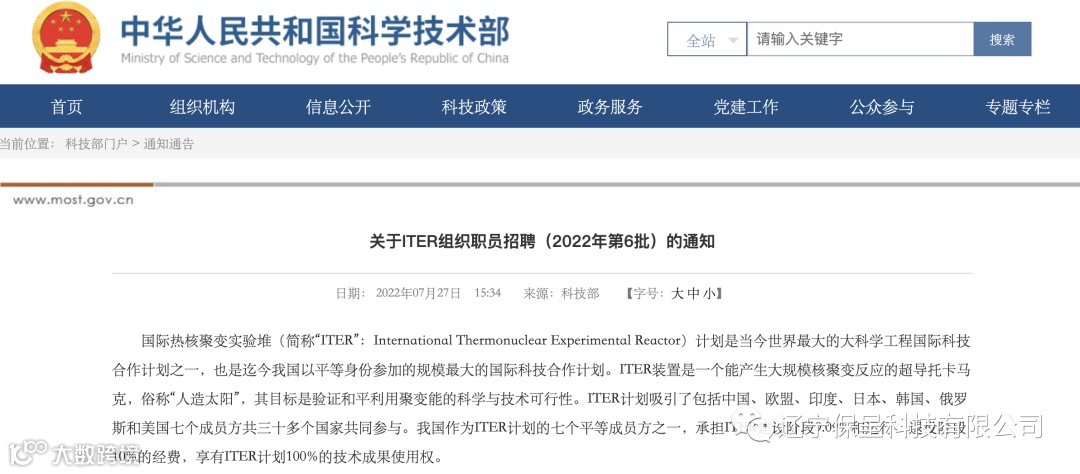 本期保呈快讯内容:关于《ITER组织职员招聘(2022年第6批)的通知》-内容分享