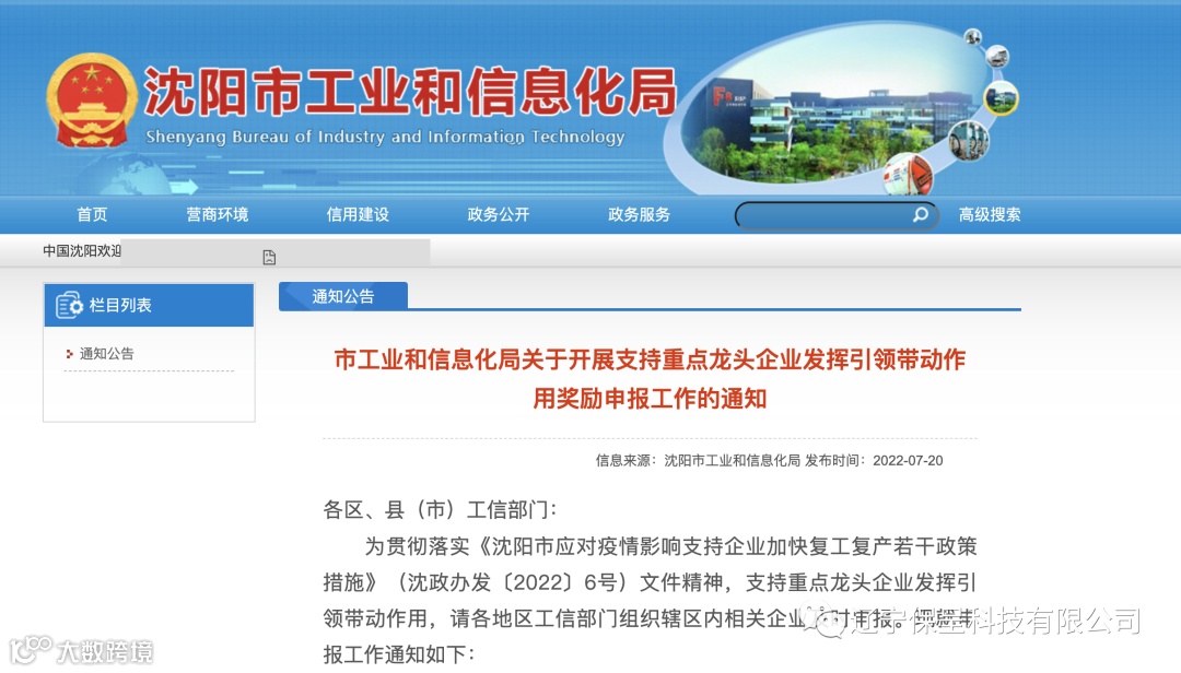 本期保呈快讯内容:沈阳市关于《工业和信息化局关于开展支持重点龙头企业发挥引领带动作用奖励申报工作的通知》-内容分享