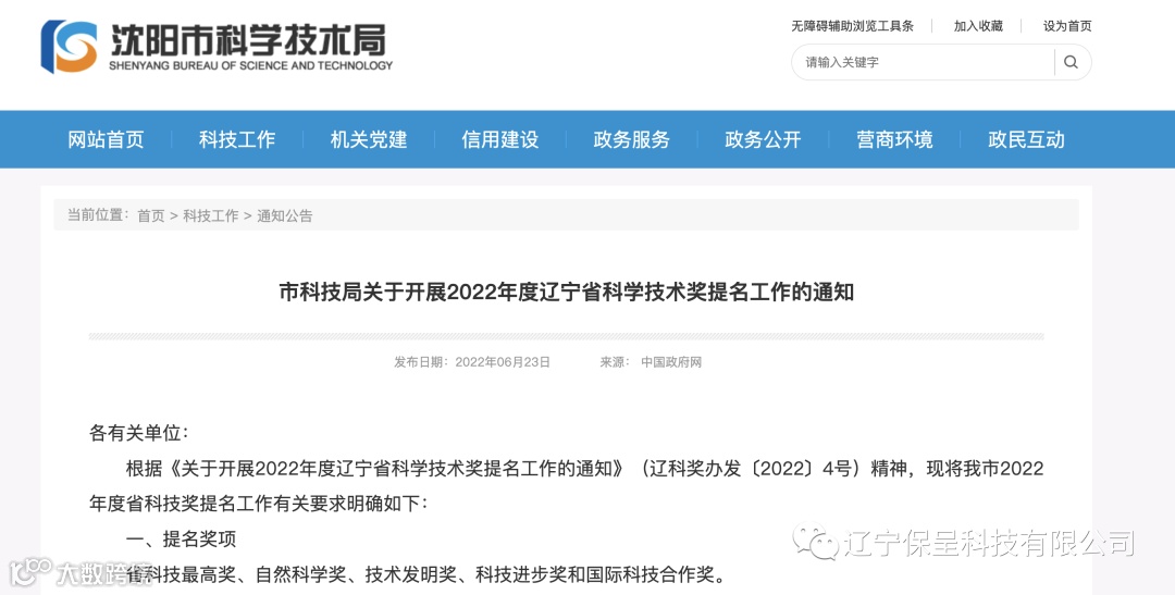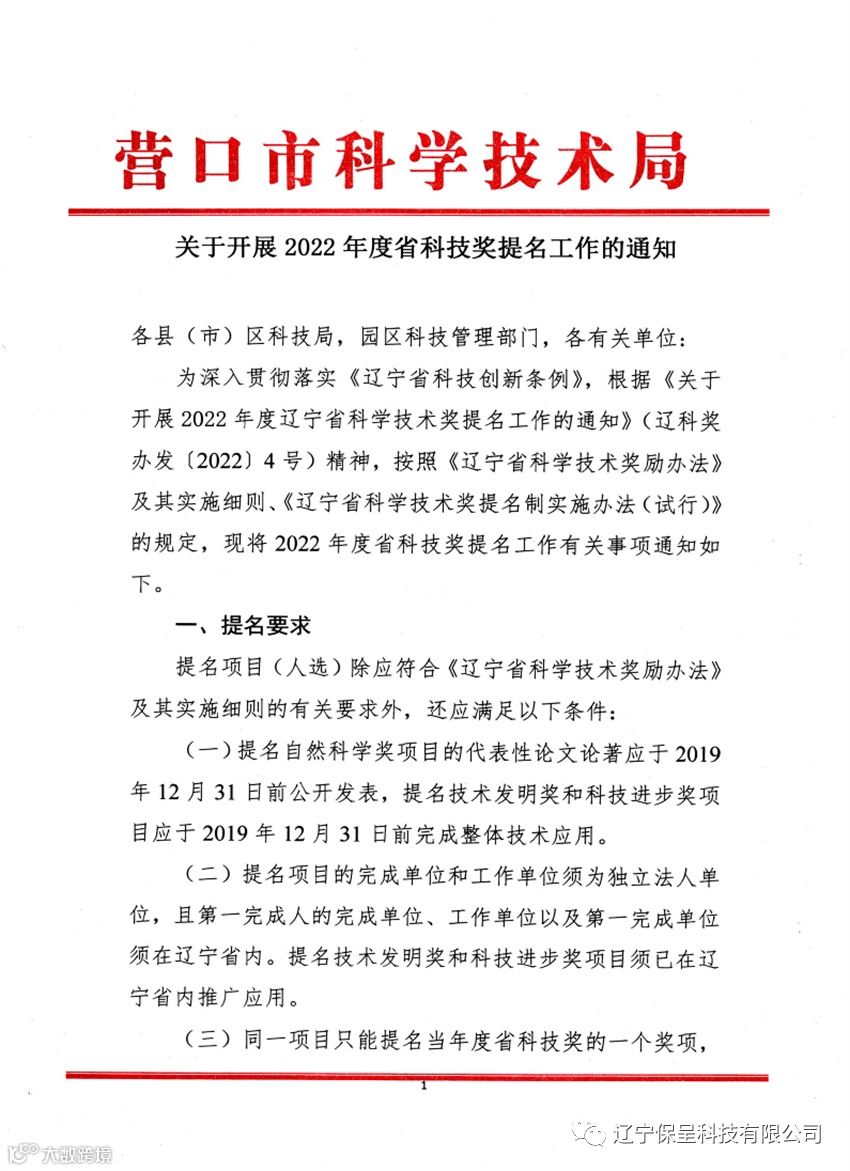 本期保呈-杨乔雯快讯内容:关于《各市科技局关于开展2022年度辽宁省科学技术奖提名工作的通知》-内容分享