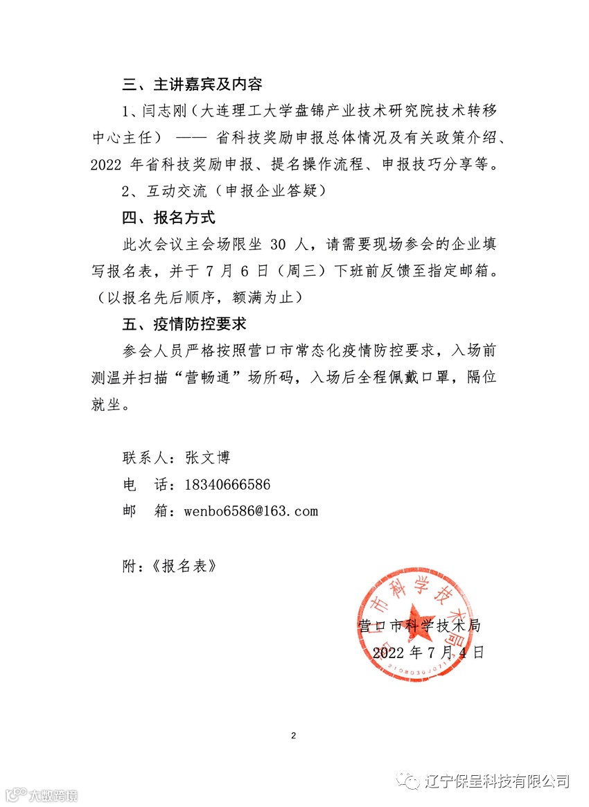 来源:营口市科学技术局