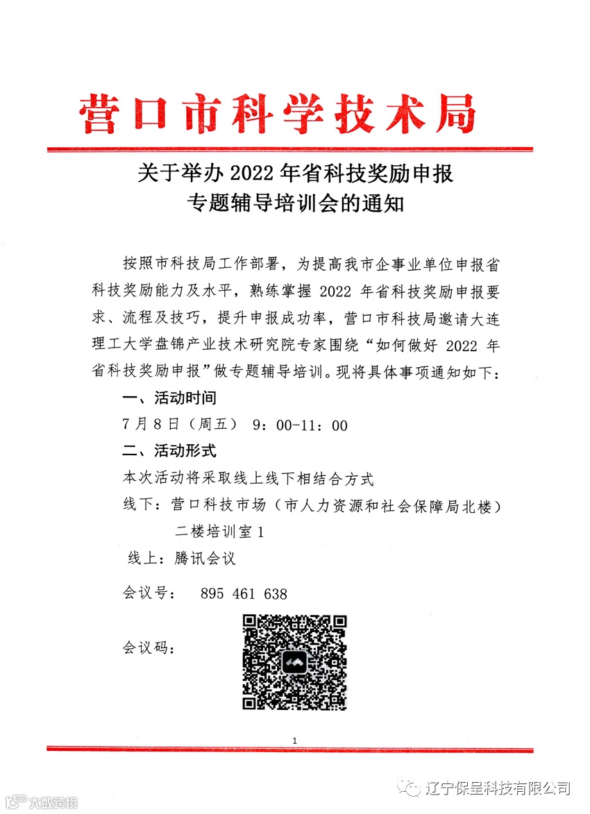 本期保呈-杨乔雯快讯内容:关于《举办2022年省科技奖励申报专题辅导培训会的通知》-内容分享