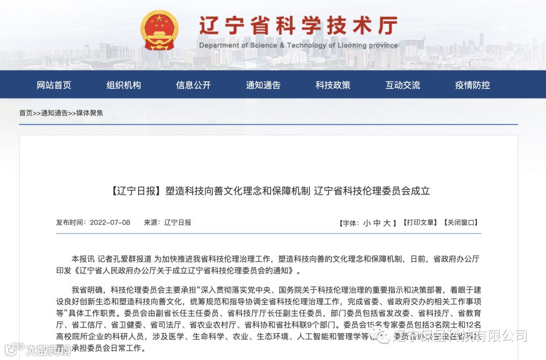 本期保呈快讯内容:关于《塑造科技向善文化理念和保障机制 辽宁省科技伦理委员会成立》-内容分享