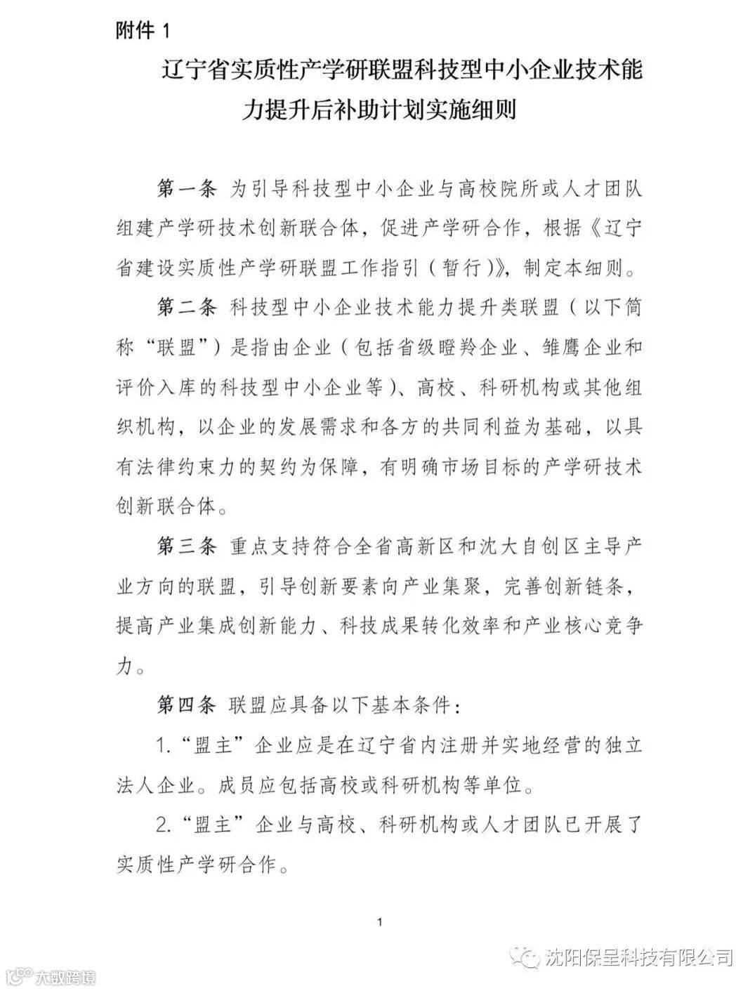 附件:1.《辽宁省实质性产学研联盟科技型中小企业技术能力提升后补助计划实施细则》