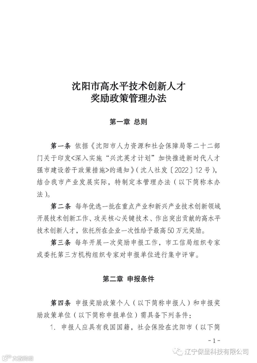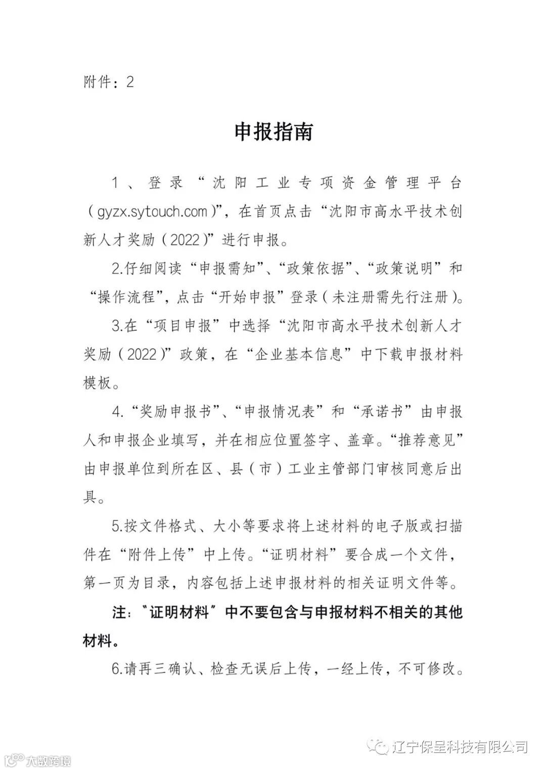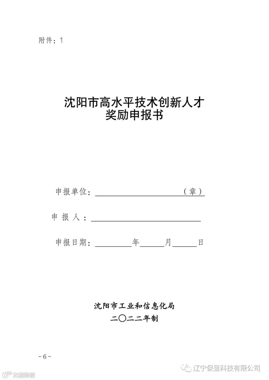 本期保呈-杨乔雯🐑快讯内容:市工业和信息化局关于《组织开展2022年度沈阳市高水平技术创新人才奖励工作的通知》-内容分享