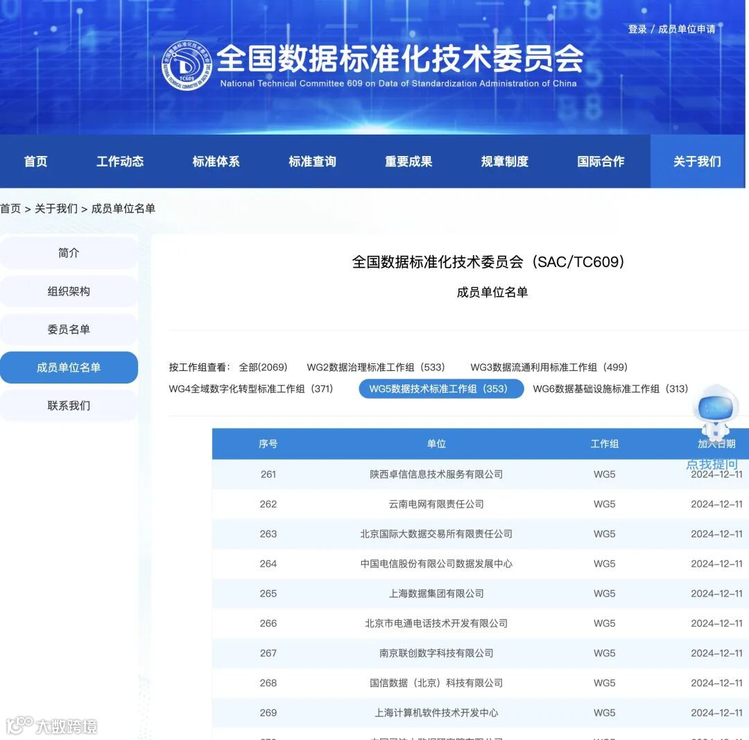 近日,南京联创数字科技有限公司正式成为全国数据标准化技术委员会(TC609)WG4全域数字化转型标准工作组和WG5数据技术标准工作组的成员单位。
