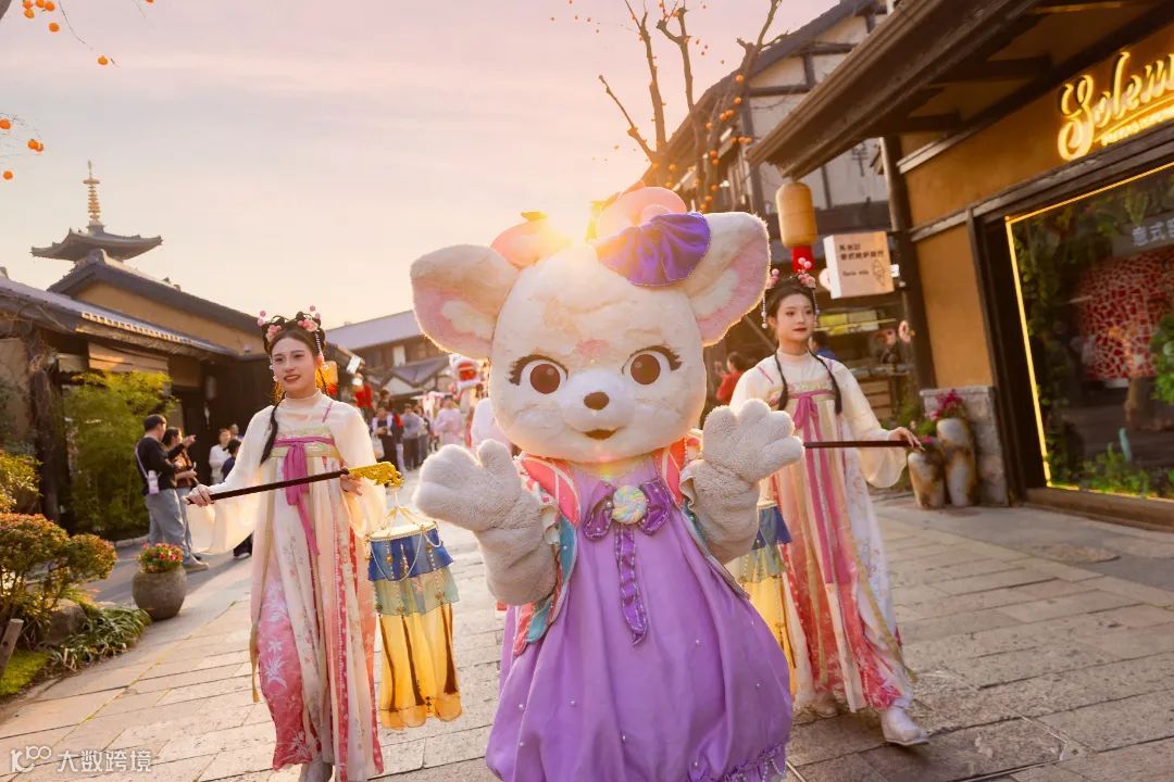 身着华服的演员们全天热闹演绎:花朝大巡游亲密互动,唐风演艺载歌载舞,NPC沉浸式互动,精彩表演一场接一场。
