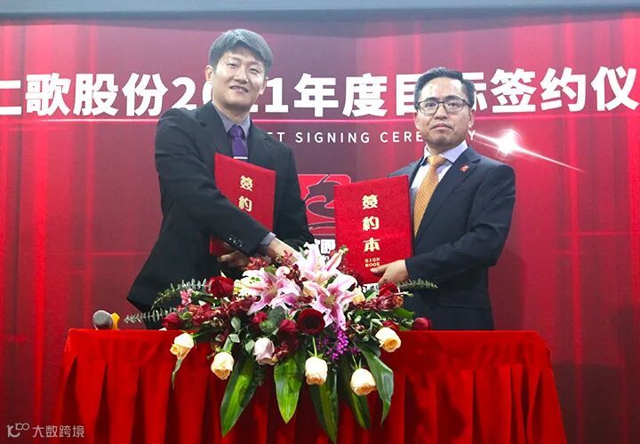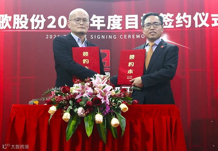 ▲市场支持部总监张奇宣读2021年度目标并签约