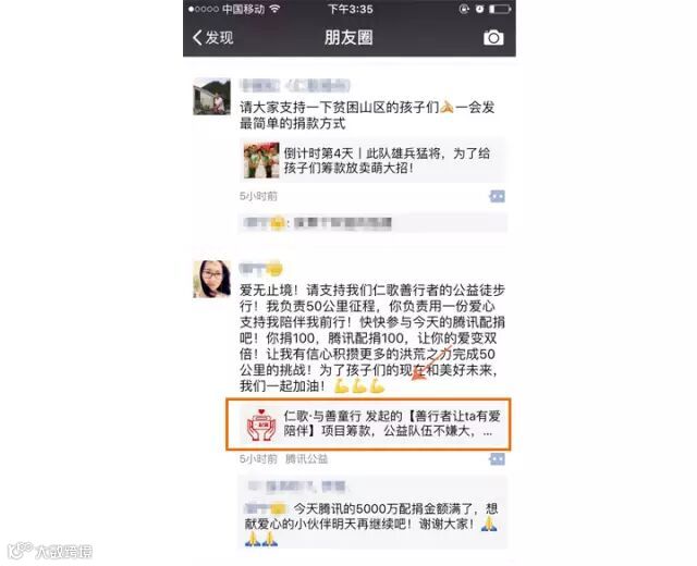▲如果您熟识仁歌队友,定会看到他们不遗余力的筹款,在朋友圈点开链接,即可跳转捐赠页面!