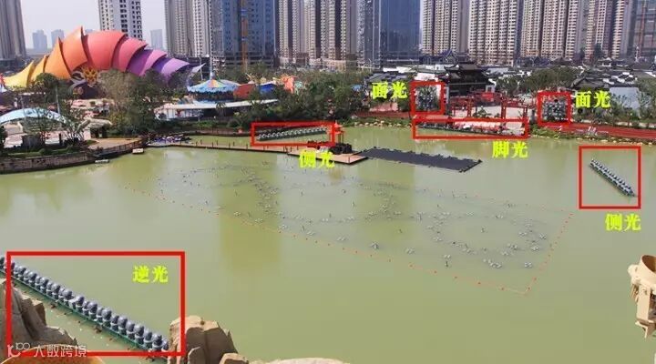 A:大湖秀在室外使用的设备是各型号的灯具,在灯具选型上尽可能选择防水灯具,LED Par灯是防水灯具,但是各类型的电脑灯比如:电脑图案灯、电脑光束灯,都不是防水灯具,所以需要在这些灯具外面加一个防雨罩起到保护的作用,同时考虑到灯具功率较大,散热的问题也是一个重点,在防雨罩风扇选择的时候尽可能选择功率大风扇,以保证输送最大量的冷风,降低防雨罩内的温度。