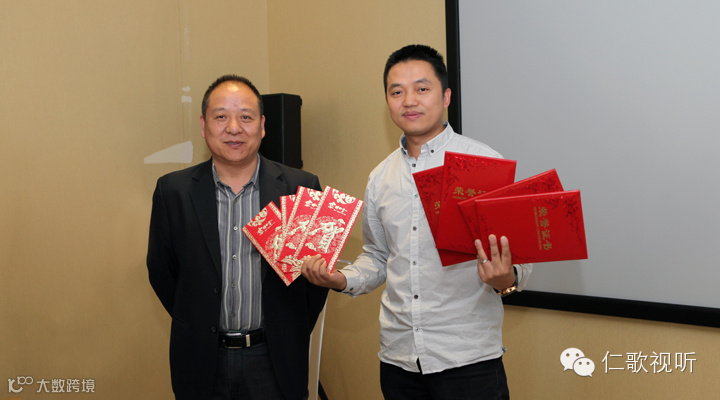 仁歌视听总经理石庆君女士为本季度的企业明星颁发荣誉证书及奖品,技术总监毛关清为特殊贡献奖员工代表颁发荣誉证书及奖金,并表示祝贺。石庆君女士在颁奖仪式中发表讲话,对这些成绩出色的优秀员工给予肯定并对他们为公司辛勤的付出表示由衷的感谢。