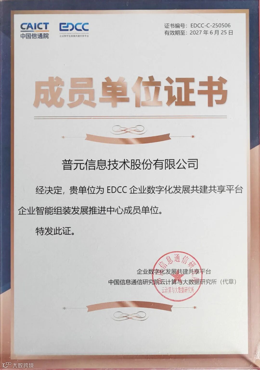 普元获批加入中国信通院EDCC企业智能组装发展推进中心