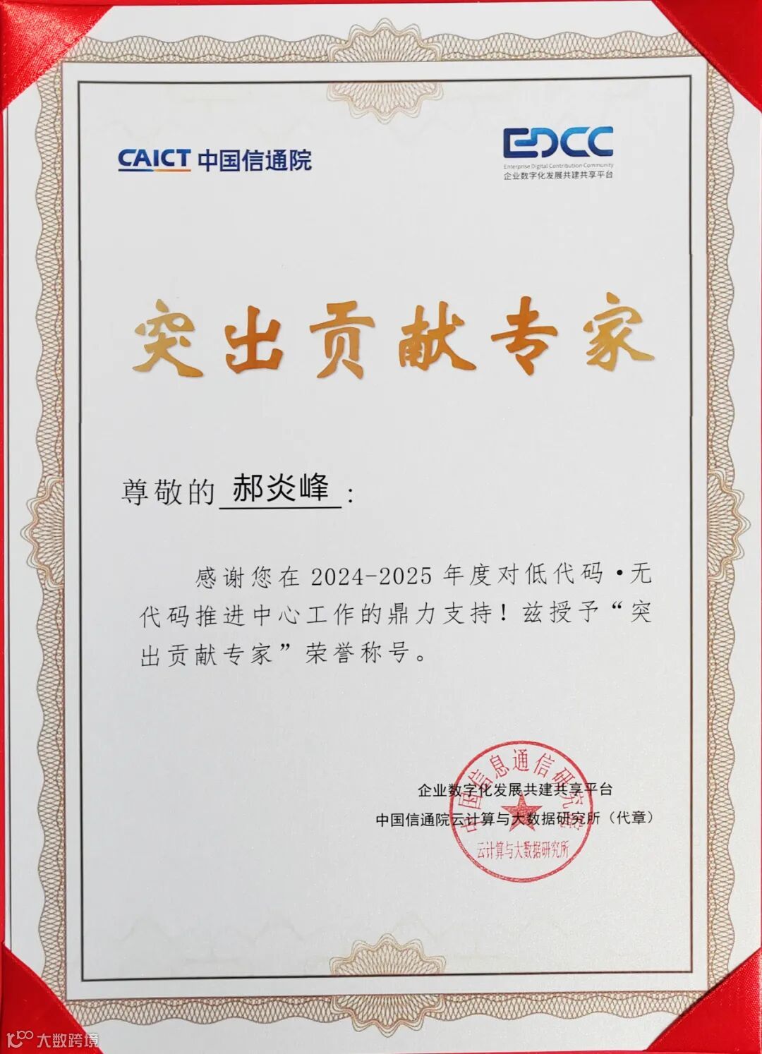 普元郝炎峰获评2025年度EDCC低代码·无代码推进中心突出贡献专家