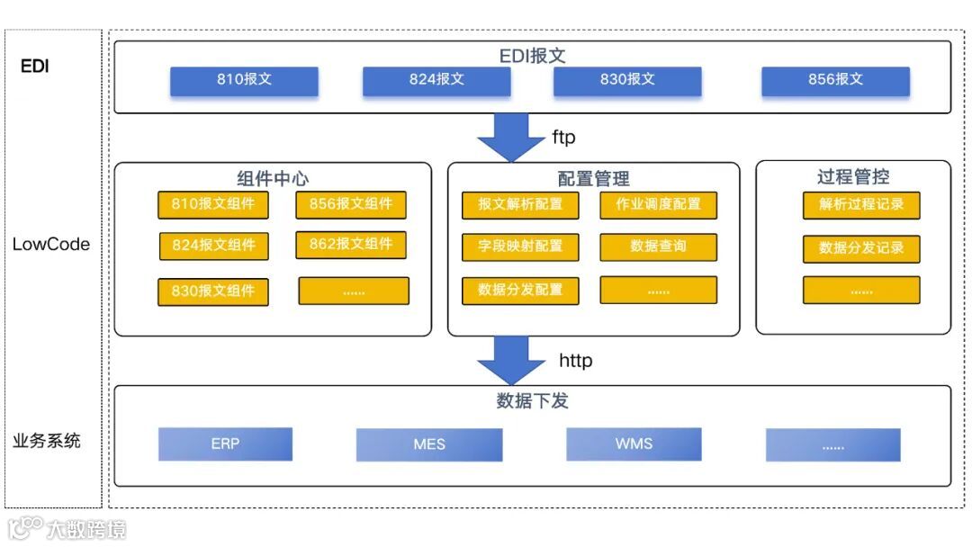 通过低代码平台构建EDI解析插件,将EDI数据接入系统。提供可视化管理能力实现接入过程可追溯。