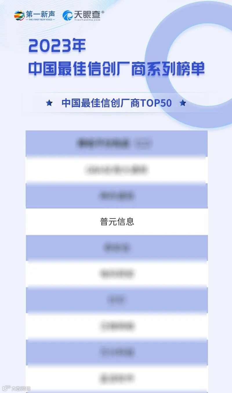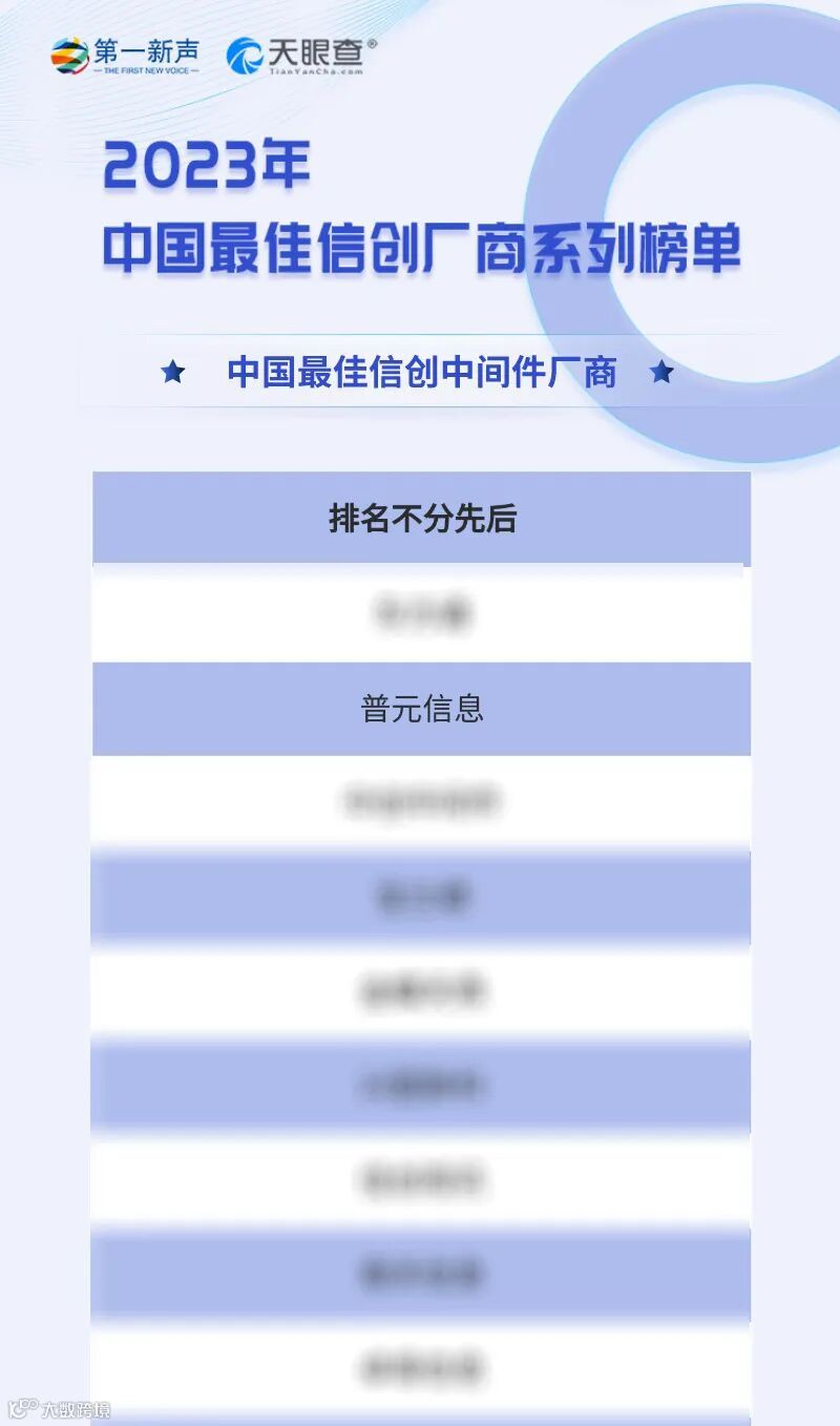 近日,2023年中国最佳信创厂商系列榜单覆盖综合创新领域与多维度细分行业等,由中国科技产业资本研究平台“第一新声”联合商业查询平台“天眼查”正式推出。普元信息凭借全栈式信创能力,以及服务多行业客户信创化、数字化、智能化发展的卓越成绩,成功入选“中国最佳信创厂商TOP50”、“中国最佳信创中间件厂商”榜单。此次获评最佳,是专业机构、企业客户、合作伙伴对普元信息综合创新实力与行业核心竞争力的充分肯定。
