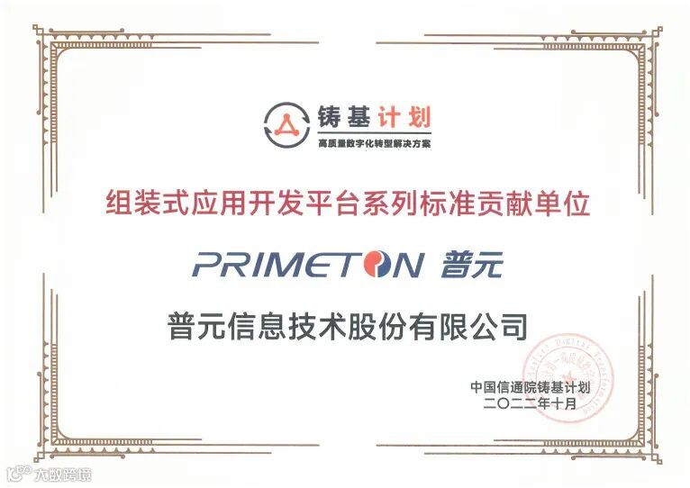 普元获评中国信通院“组装式应用开发平台系列标准贡献单位”