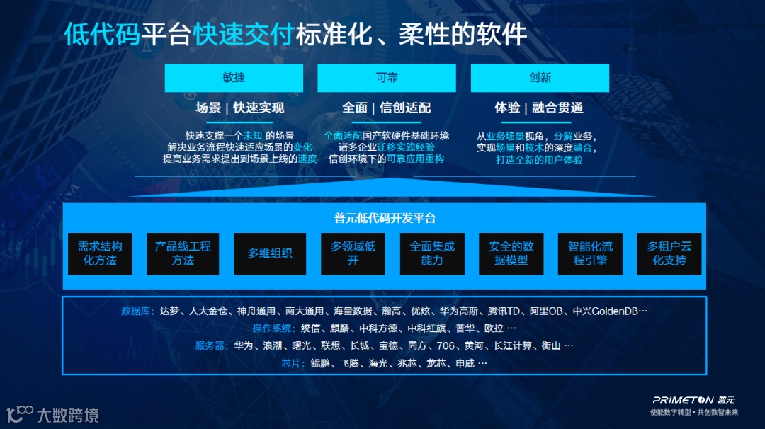 凭借一系列创新,从企业发展的早期阶段开始,普元产品就凭借不输于跨国企业的软件性能和稳定性,赢得了很多行业头部客户的认可。各个行业头部客户最复杂、最通用的业务需要,对普元的产品形成了反哺,让普元得以沉淀和积累大量的符合企业应用特征的组件。伴随企业对数字化、智能化业务需求的提升,普元低代码开发平台在组件丰富度与可复用能力的逐渐提升中,帮助企业快速打造迭代场景或未知场景的数字化应用,让软件交付的时间更短、质量更高、成本更低、性能更好、稳定性更高。