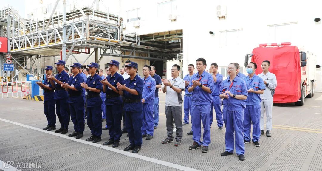 演练结束后,参加仪式的领导与园区消防队合影留念。仪式结束后,双方还就“消防应急救援”工作开展了座谈交流。