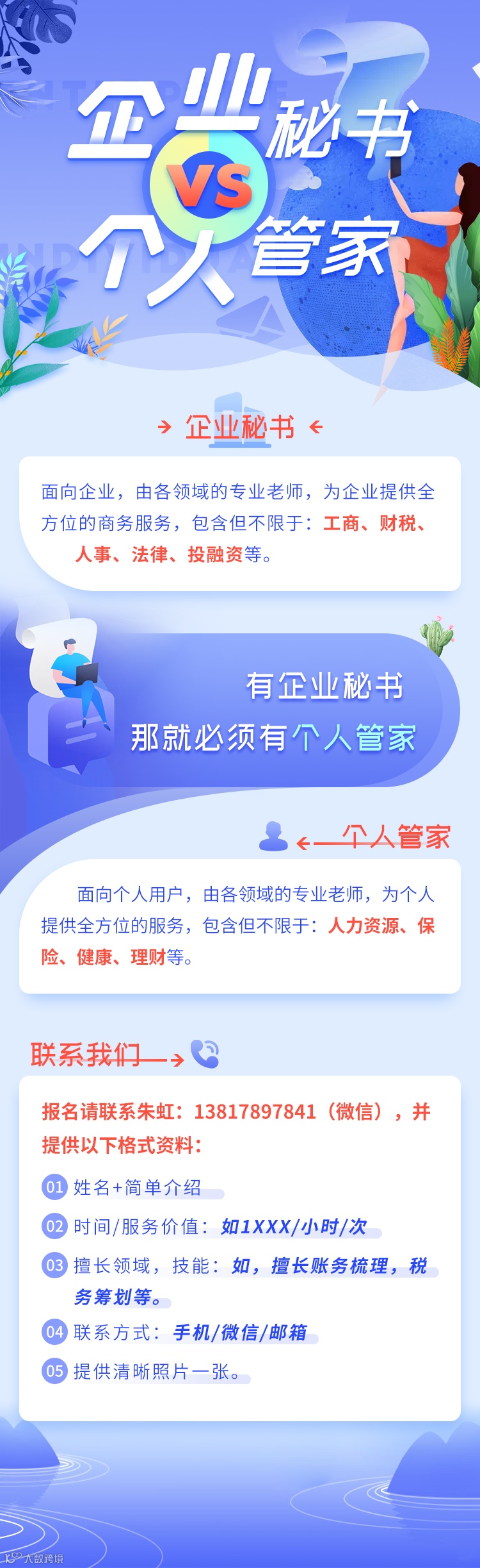 导读:现企业秘书个人管家已在小程序上线了,请各位可以提供服务的老师联系客服朱虹:13817897841有需求的公司