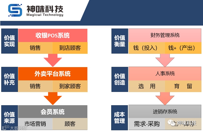 目前大型的餐饮企业,资源配套相对成熟,可以购买昂贵的软件、聘请行业中顶尖的CFO、CTO、CMO、CHO等,并在CEO的推动下完成大数据智能化整合;这个开支每年约几百万;但对于中小企业来说,这个投入是望尘莫及的。