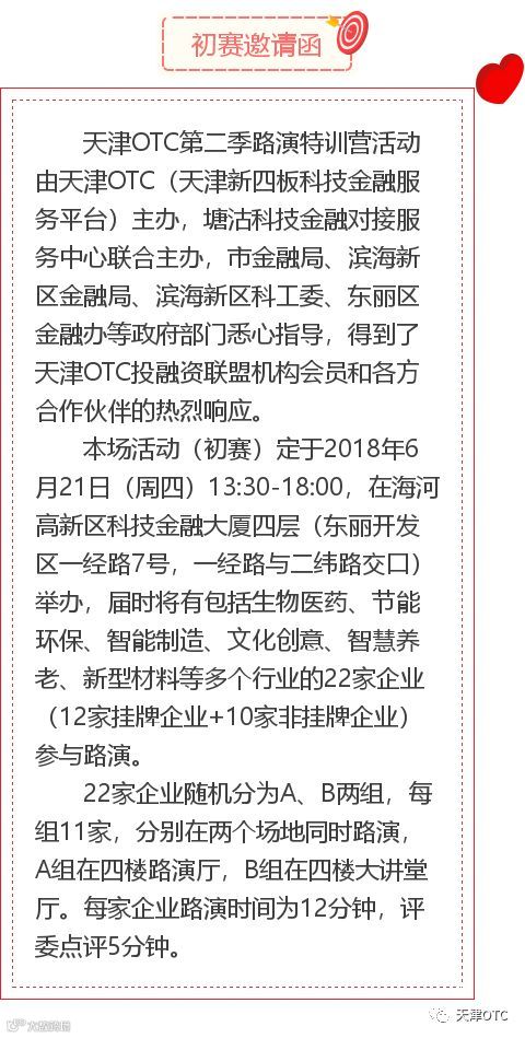 【OTC诚邀】欢迎莅临天津OTC第二季路演特训营初赛现场