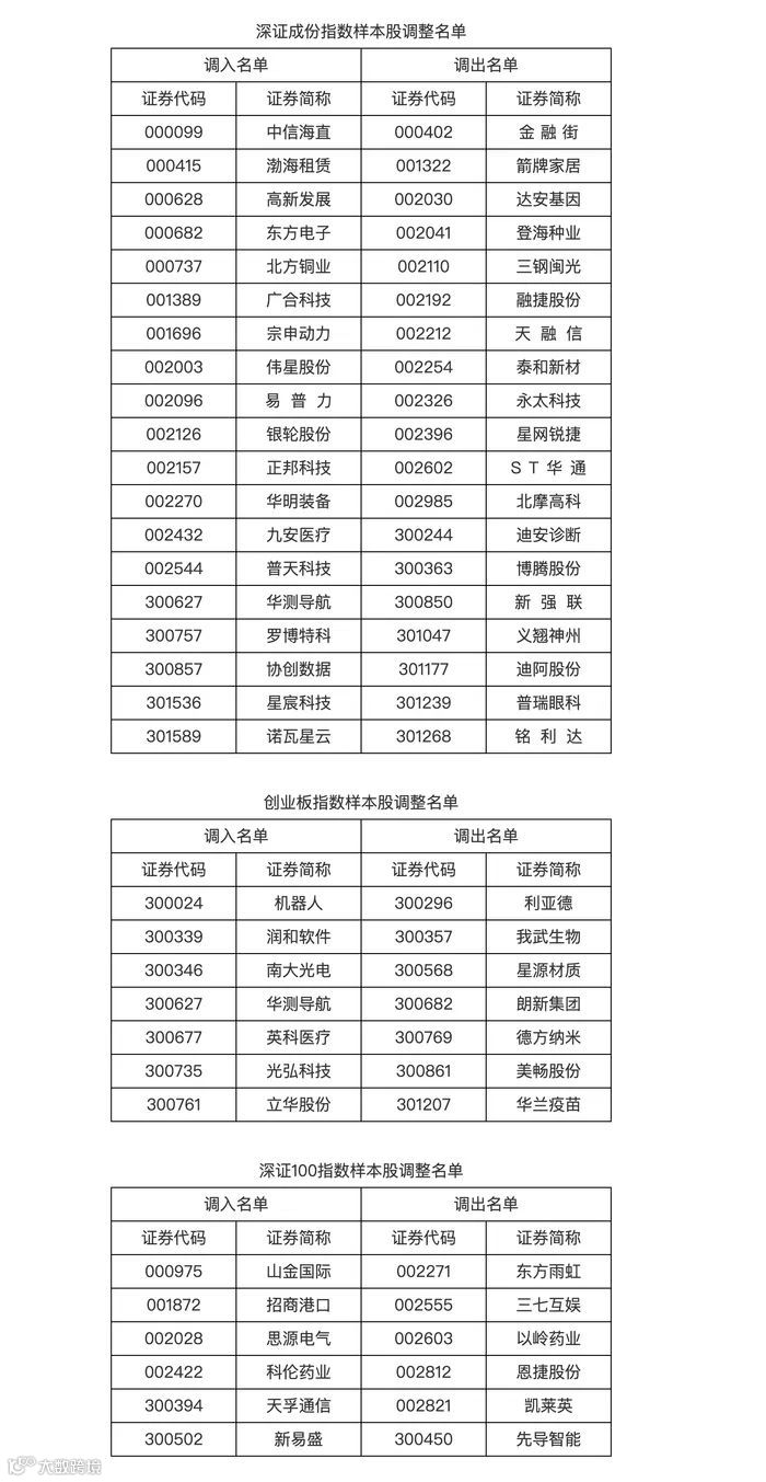 日前,深交所及其全资子公司深圳证券信息有限公司发布公告,将根据指数编制规则,综合考量深市公司的市值代表性、证券流动性、经营合规情况等因素,对深证成指、创业板指、深证100指数(以下统称“深市核心指数”)样本股进行定期调整。本次调整于12月16日正式实施。