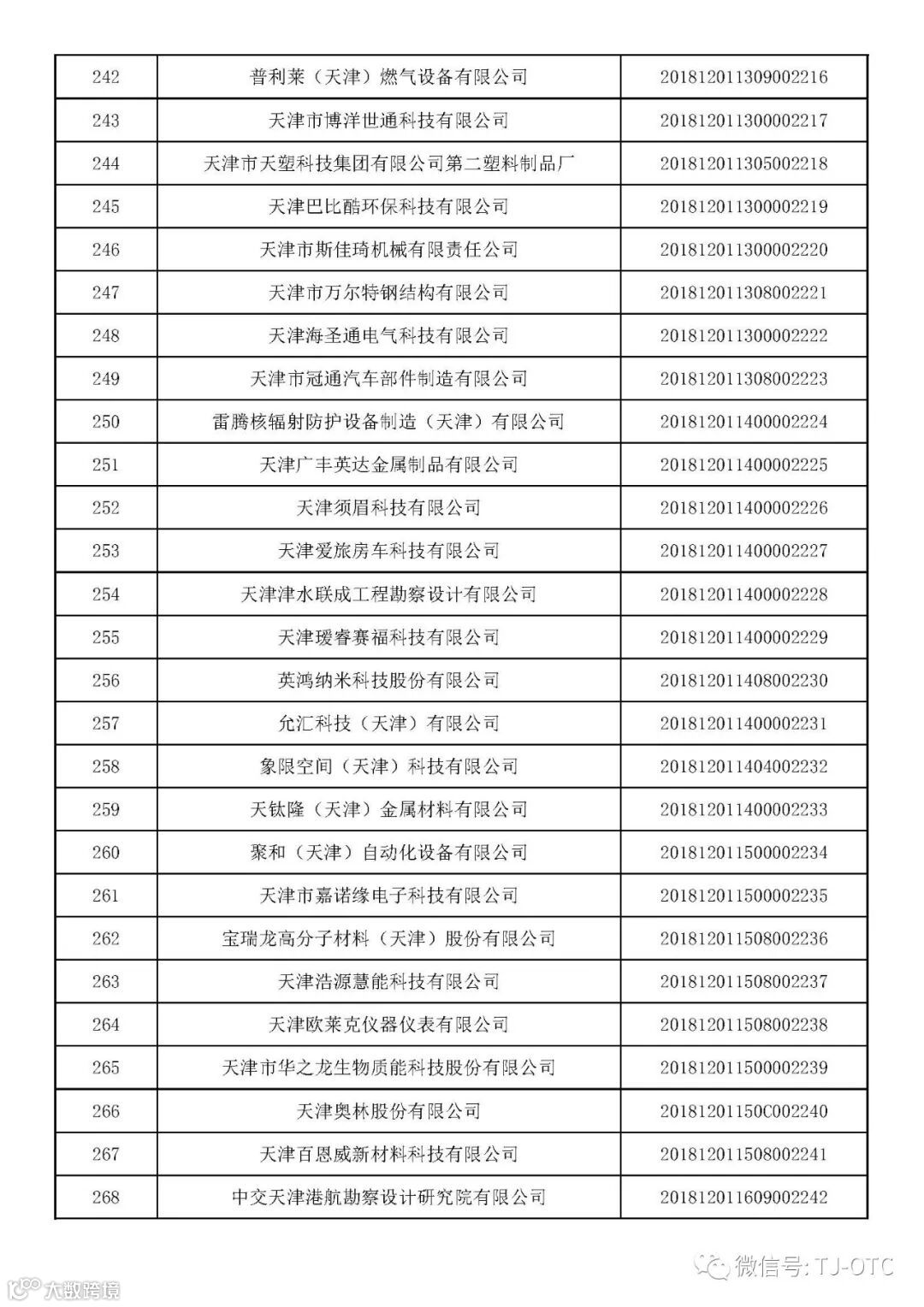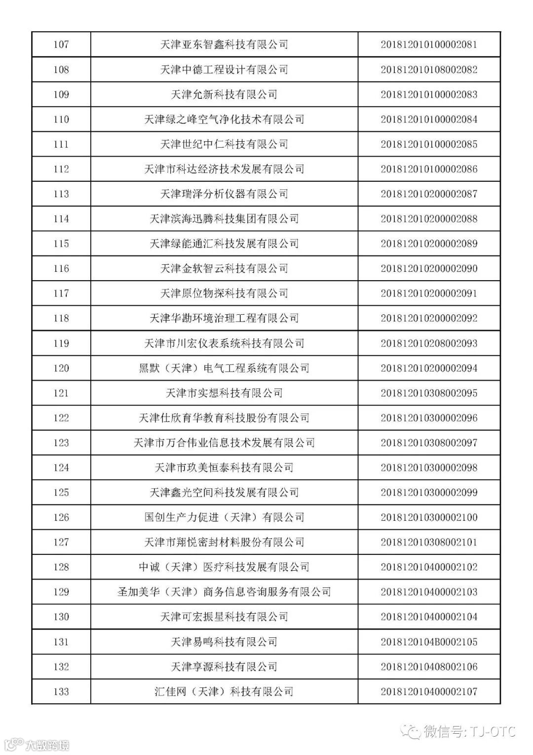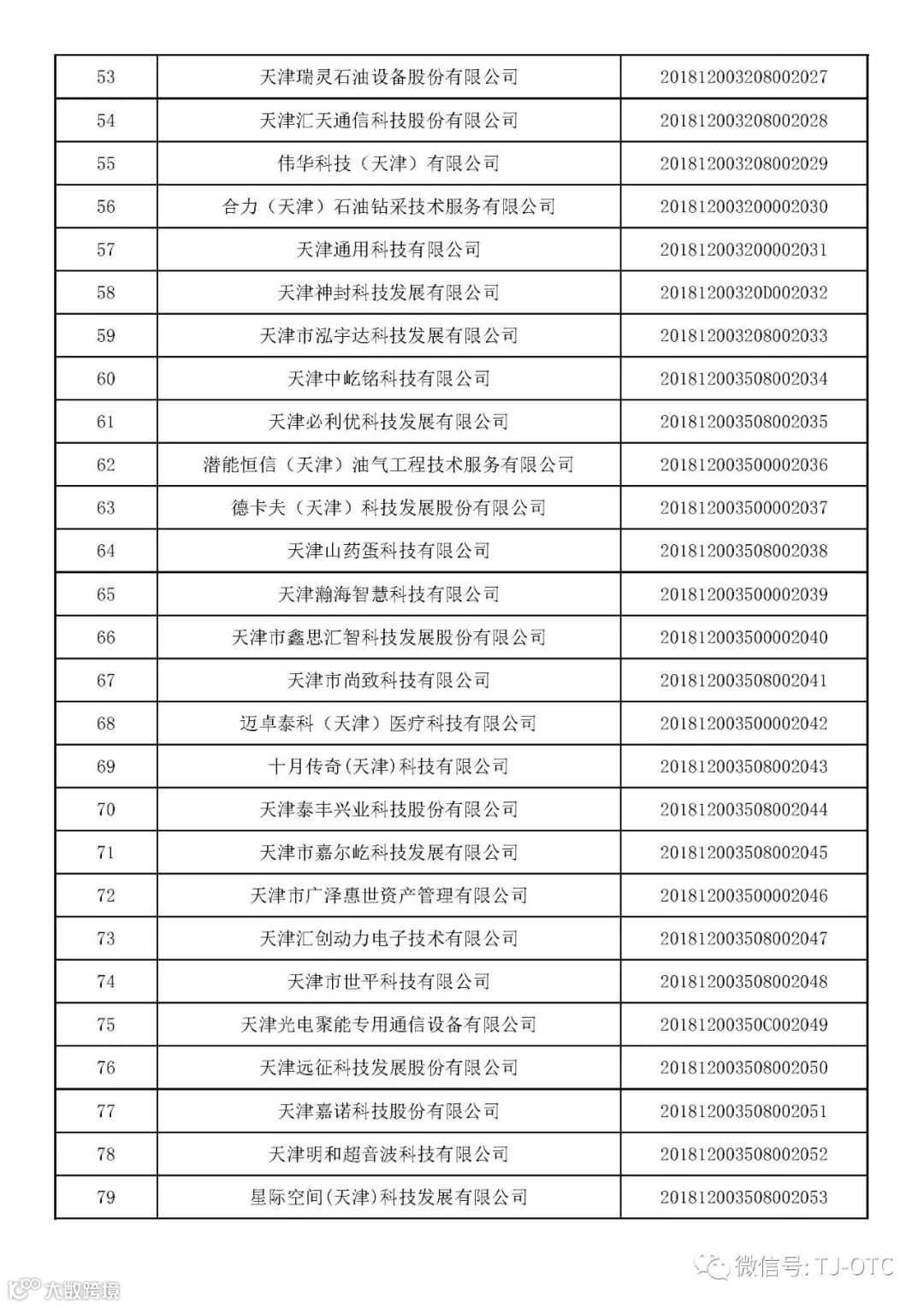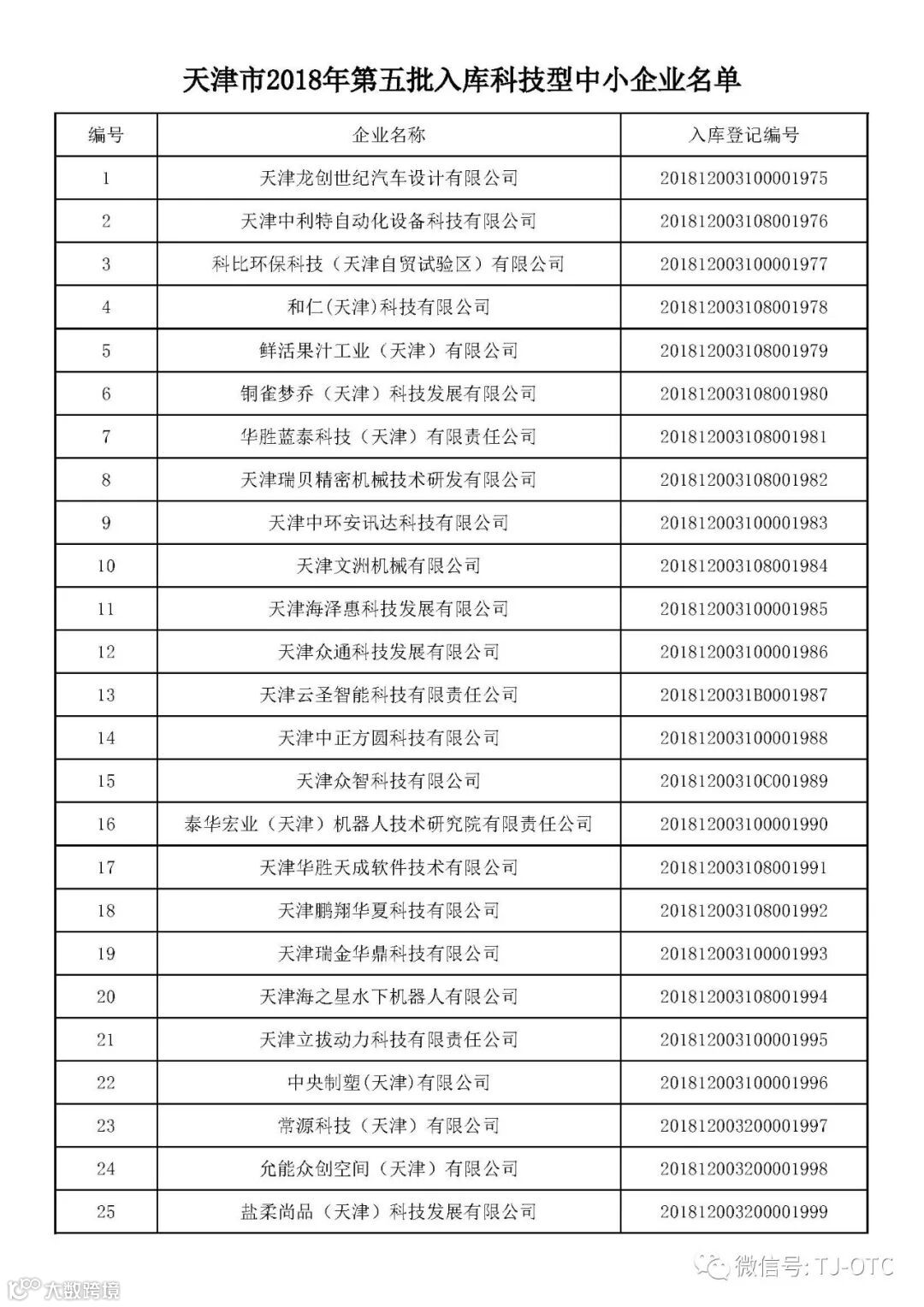 天津市2018年第五批入库国家科技型中小企业名单公告