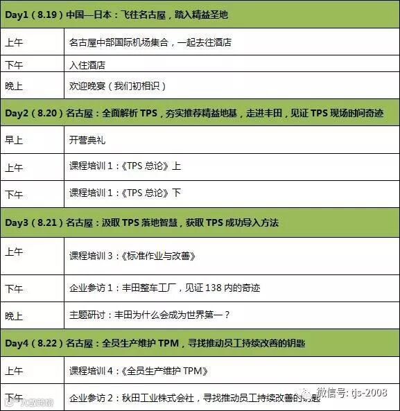 你知道“丰田生产方式(TPS)”吗?它被大众,西门子、三星等世界名企所践行。8月19日天津股权交易所“日本丰田精益标杆研修之旅”即将启程,8天7夜,通过“主题课程培训+标杆企业参访+优秀项目考察+政商交流活动+深度文化体验”等环环相扣的学习环节,层层解析最原汁原味的TPS课程,拒绝走马观花!