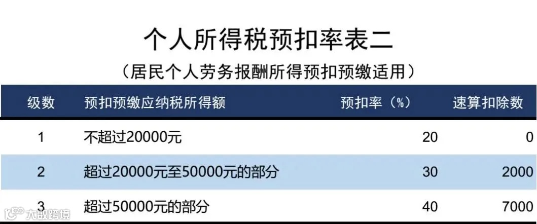 注:按月或按次申报纳税稿酬所得、特许权使用费所得预扣率:适用20%的比例。(按月或按次申报纳税)