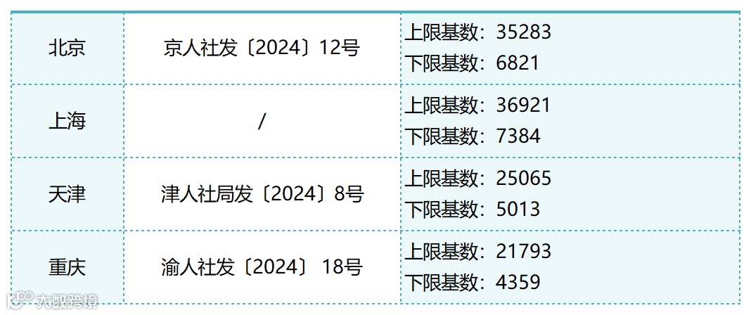 近期,北京、天津、上海、重庆等多地陆续公布了2024年社保缴费基数,明确了月缴费基数的上、下限。