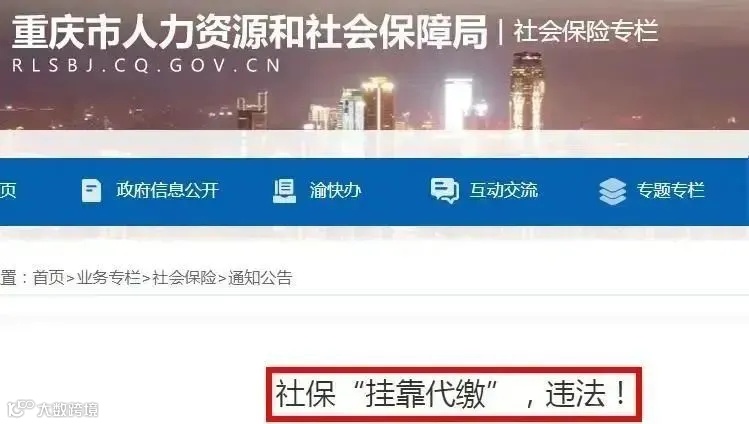 重庆人社局等多地人社部门发布相关文章,提示“挂靠”参保人员实际与参保单位并不存在劳动关系,其行为实质是骗取参保资格,属于违法行为,严重还可入刑。
