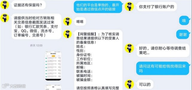 在对方一套“正规”的说辞下,小文觉得这次追回骗款肯定有戏。当小文满怀期待,将押金转给这位“正义使者”,没想到瞬间被对方拉黑。小文如同遭遇晴天霹雳,看着手机愣在原地,等回过神来赶紧来到官窑派出所报案。