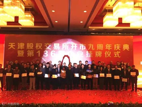 12月28日,天津股权交易所开市九周年庆典暨第136届企业挂牌仪式成功举行。50余家企业成功登陆天交所市场,至此,在成立九周年之际,天交所市场累计挂牌企业数量突破1400家。