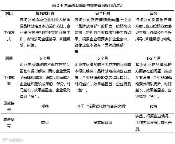 尽管设立品牌战略部确实必要,也尽管已清楚品牌战略部的职能,然而鉴于绝大多数中小企业组织结构中从未有过品牌战略有关部门的现状,为了帮助企业更好的规划实施品牌战略,天骄资本商学院联合布兰德相关专家专门研发出“托管品牌战略部”服务,除为企业直接提供品牌战略服务外,更期望通过布兰德的指导,做到“授之以鱼不如授之以渔”,为企业培育品牌战略部门,发育出合格的品牌战略管理职能。
