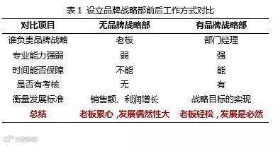 解放老板、高管:在组织结构中设立“品牌战略部”,并让该部真正展开工作,有利于降低老板和高管的工作量和难度,让老板和高管将注意力转移到更应该专注之处。