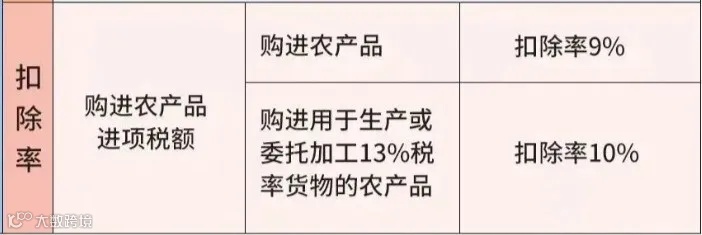 购进农产品用于生产经营且不构成货物实体的(包装物、辅助材料、燃料、低值易耗品):最终货物税率为9%时扣除率为9%;最终货物税率为13%,扣除率为10%。 -